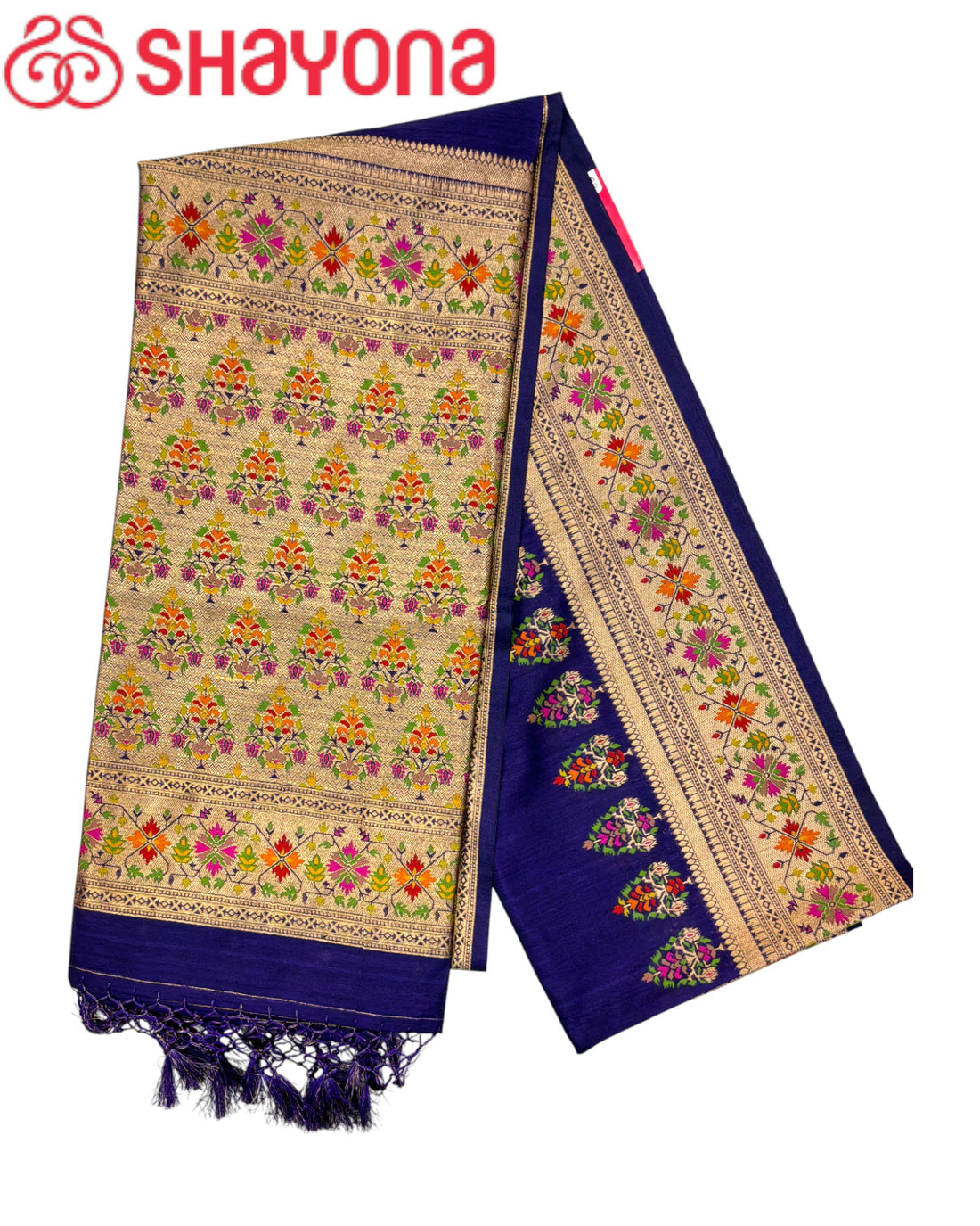 Paithani sarees are the pride of Maharashtra, renowned for their regal elegance, rich silk texture, and exquisite handwoven artistry. Originating from the historic town of Paithan, these sarees are crafted using pure silk and real zari, featuring iconic motifs such as peacocks, lotuses, vines, and parrots. The signature contrast pallus and shimmering gold borders reflect centuries of tradition, making each Paithani a masterpiece of cultural heritage and craftsmanship.