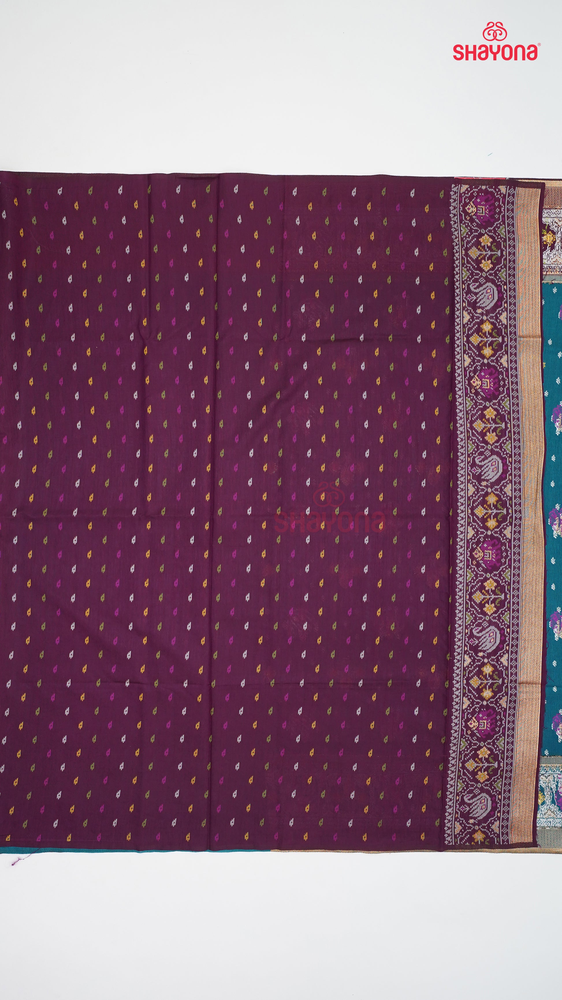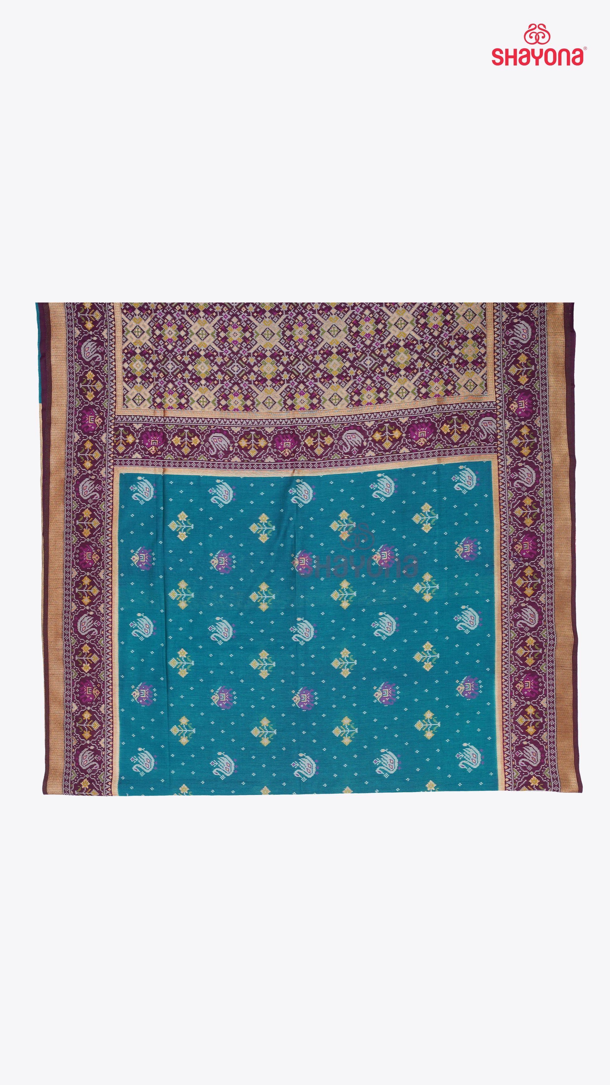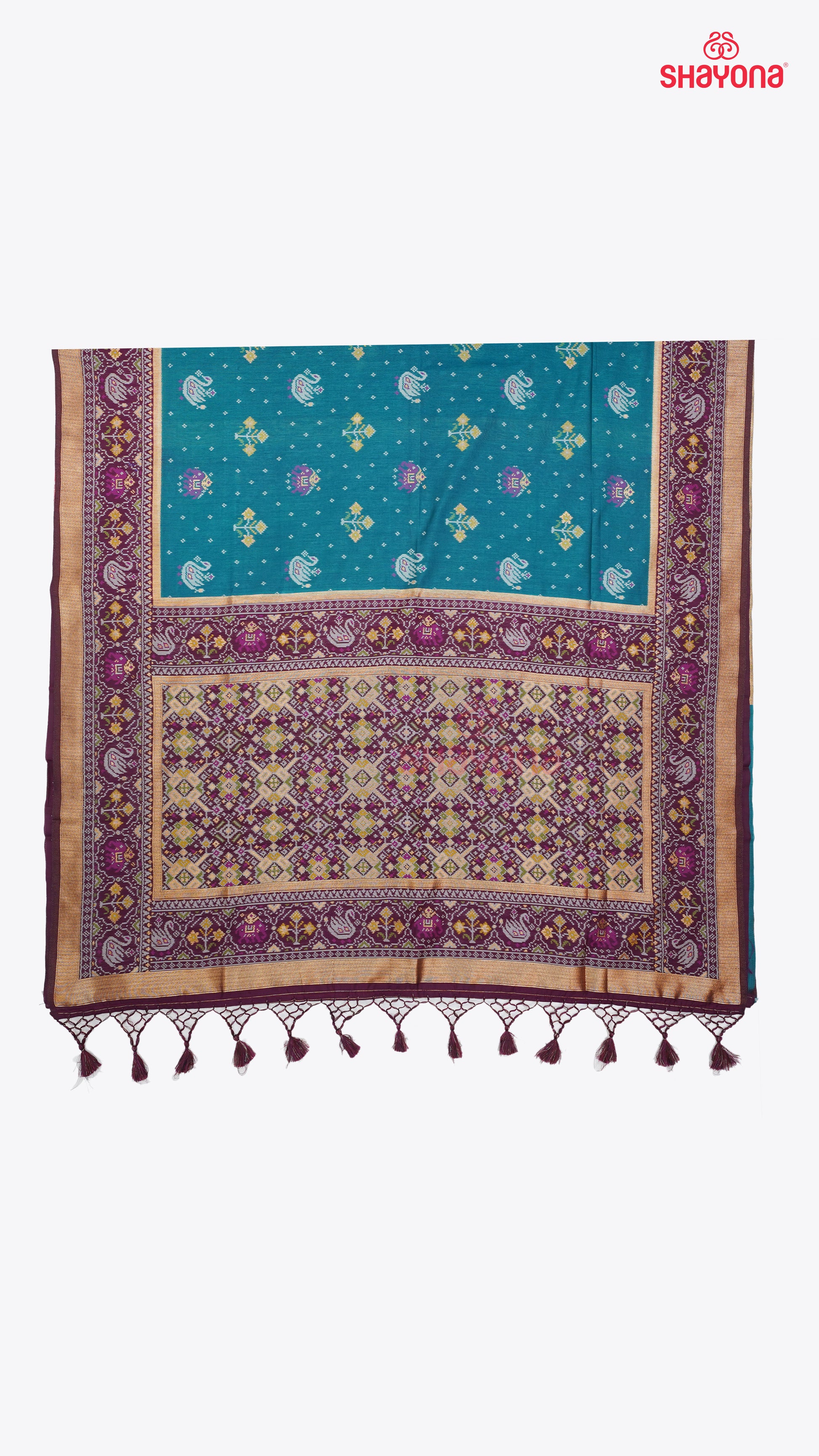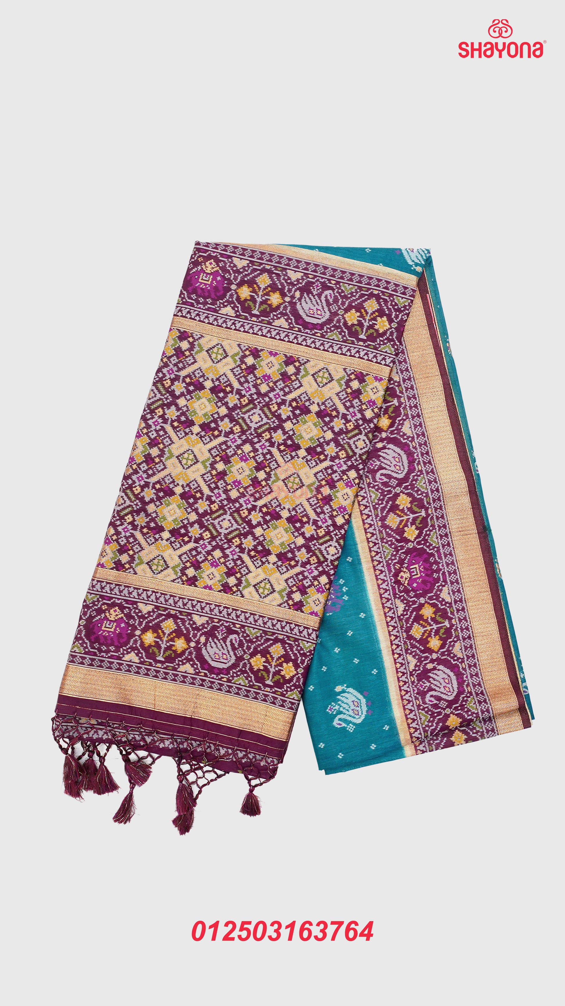 Dark Cadet Blue & Wine coloured Ghicha Art Silk Saree