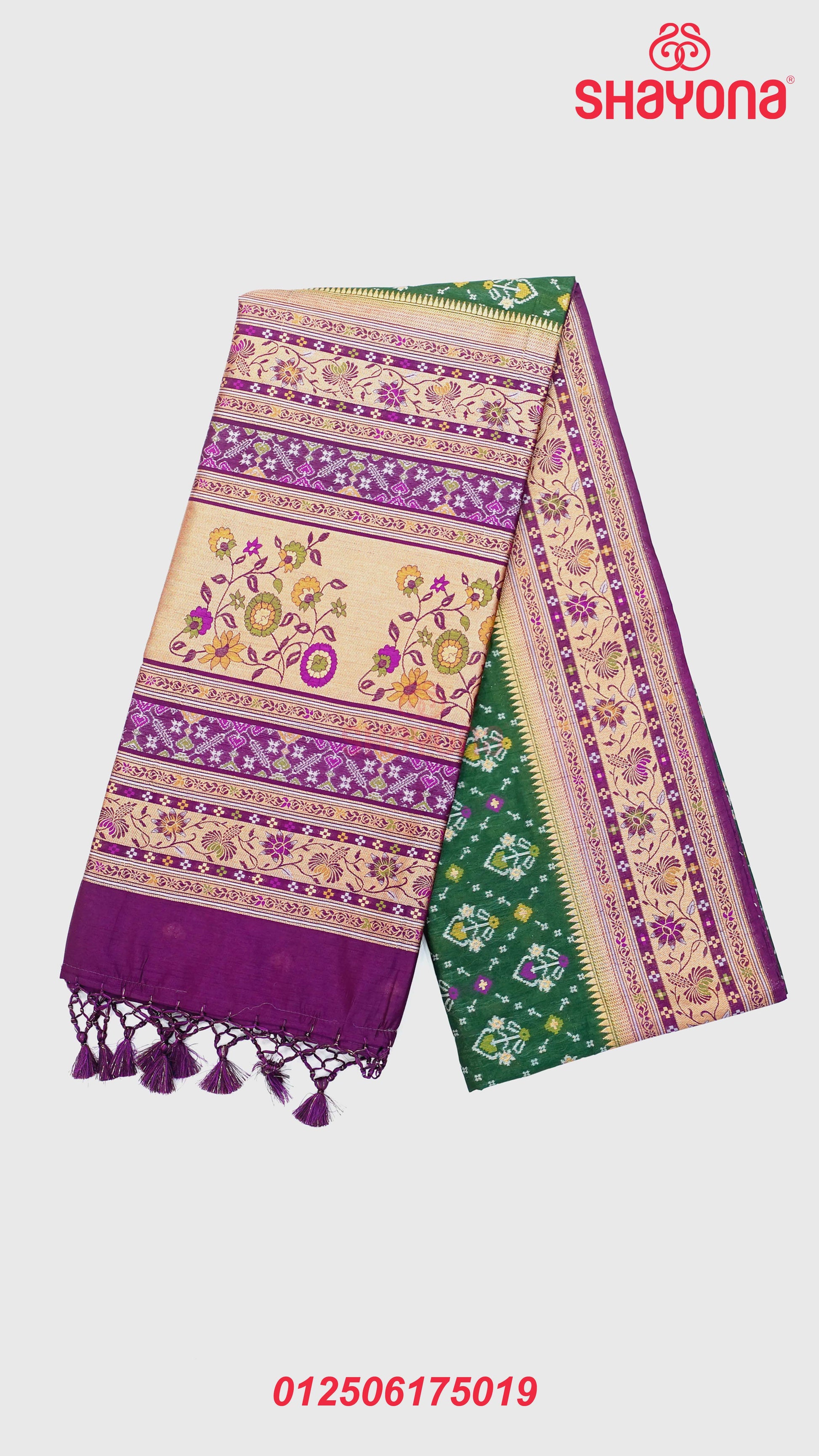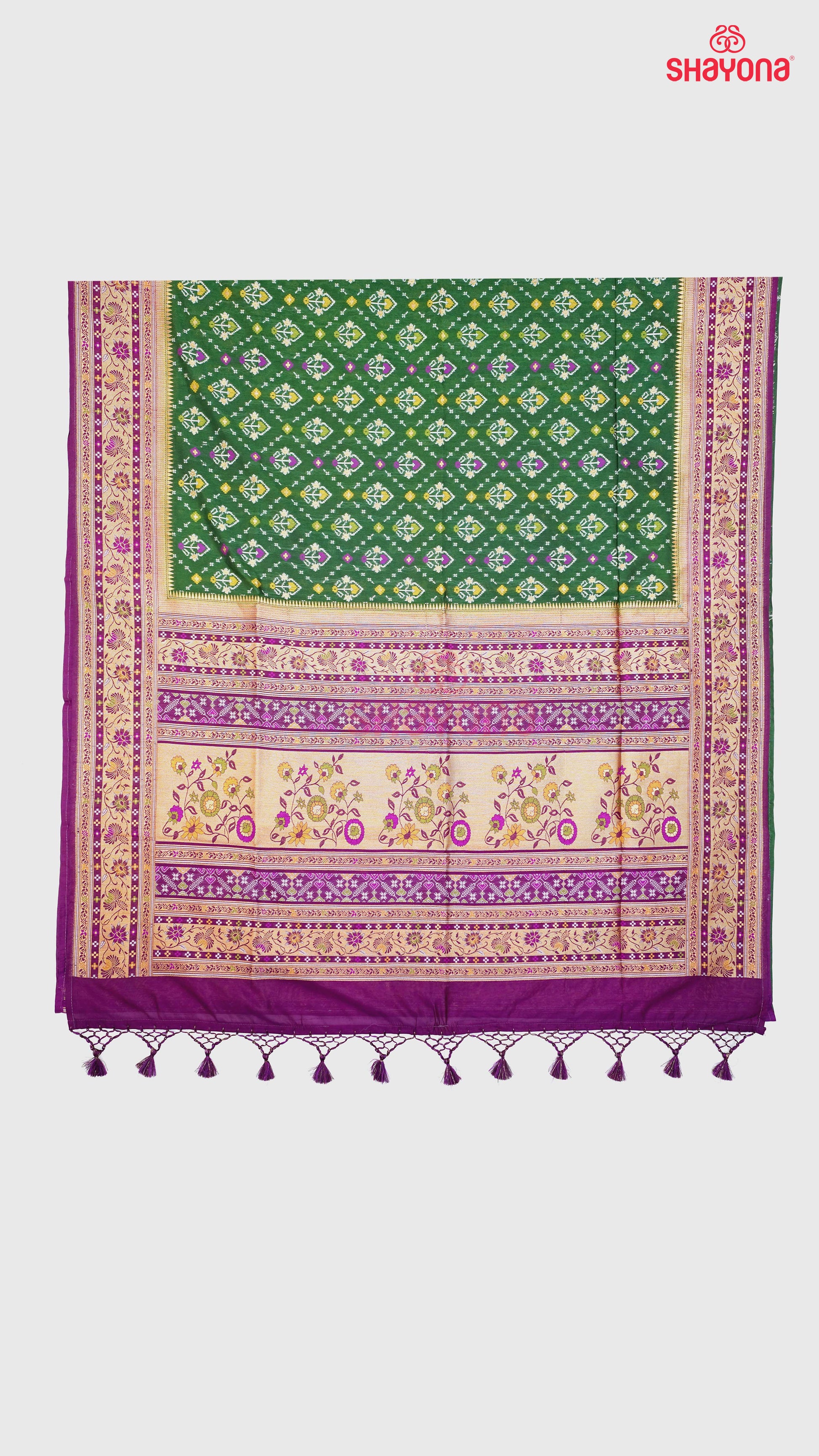 Dark Green & Dark Purple Ghicha Art Silk Saree