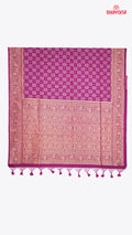Step into a world of elegance with this Dark Magenta Ghicha Art Silk Saree, a timeless weave blending traditional artistry with contemporary richness. The 5.50-meter saree is adorned with intricate all-over jaal work, showcasing the finesse of Indian handloom weaving.
