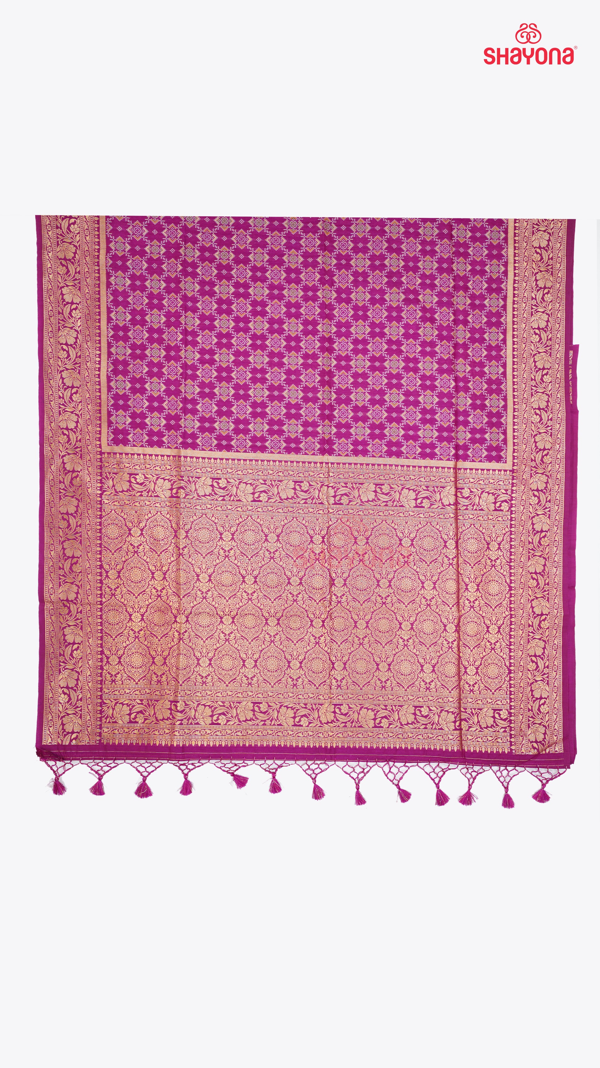 #GhichaSilkSaree#DarkMagentaSaree#ArtSilkTradition#HandloomHeritage#NakshiBorderSaree#WeddingSareeLook#ShayonaSilkSarees#FestiveEthnicWear#LuxuryHandloom#JaalWorkSaree