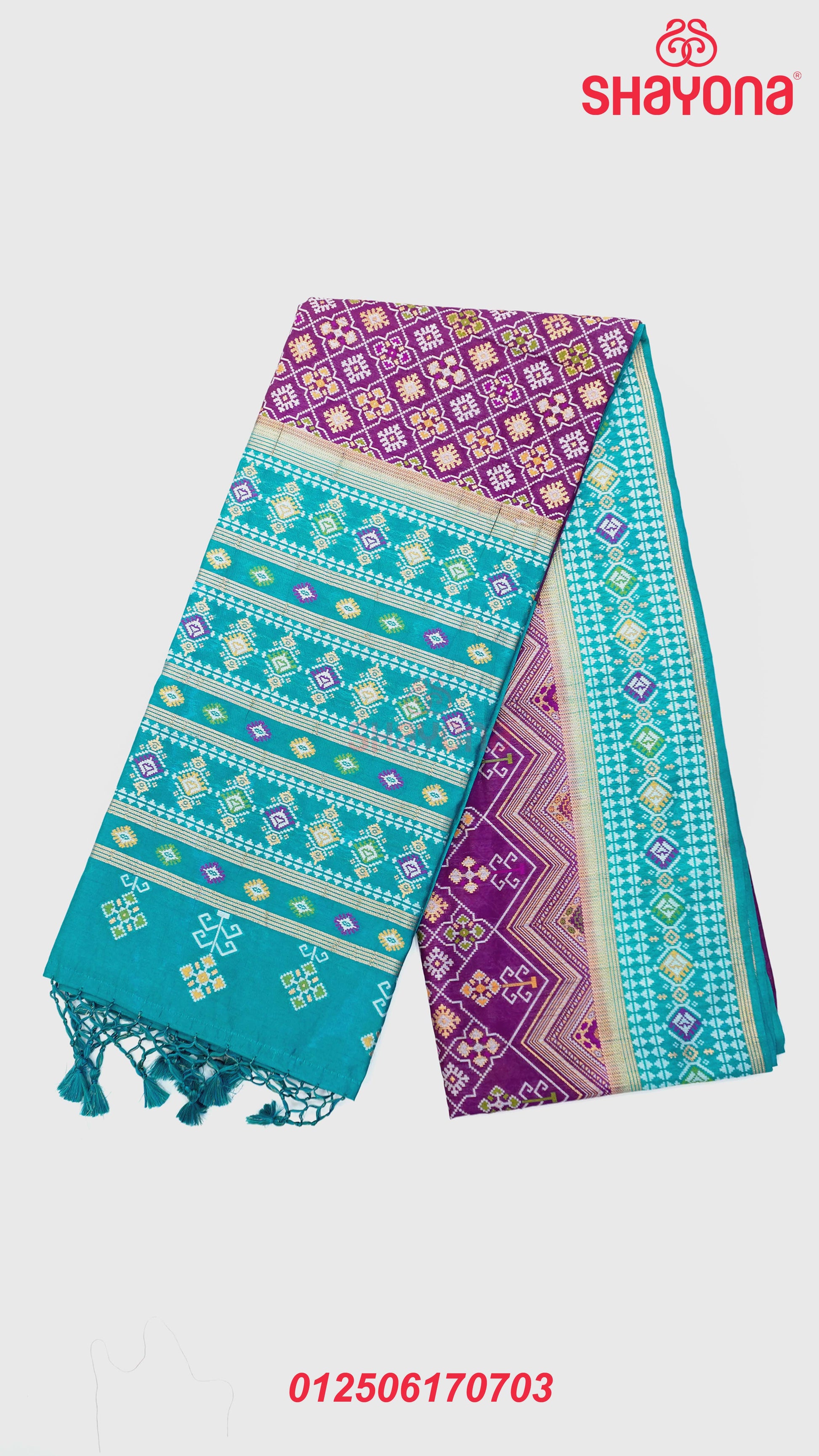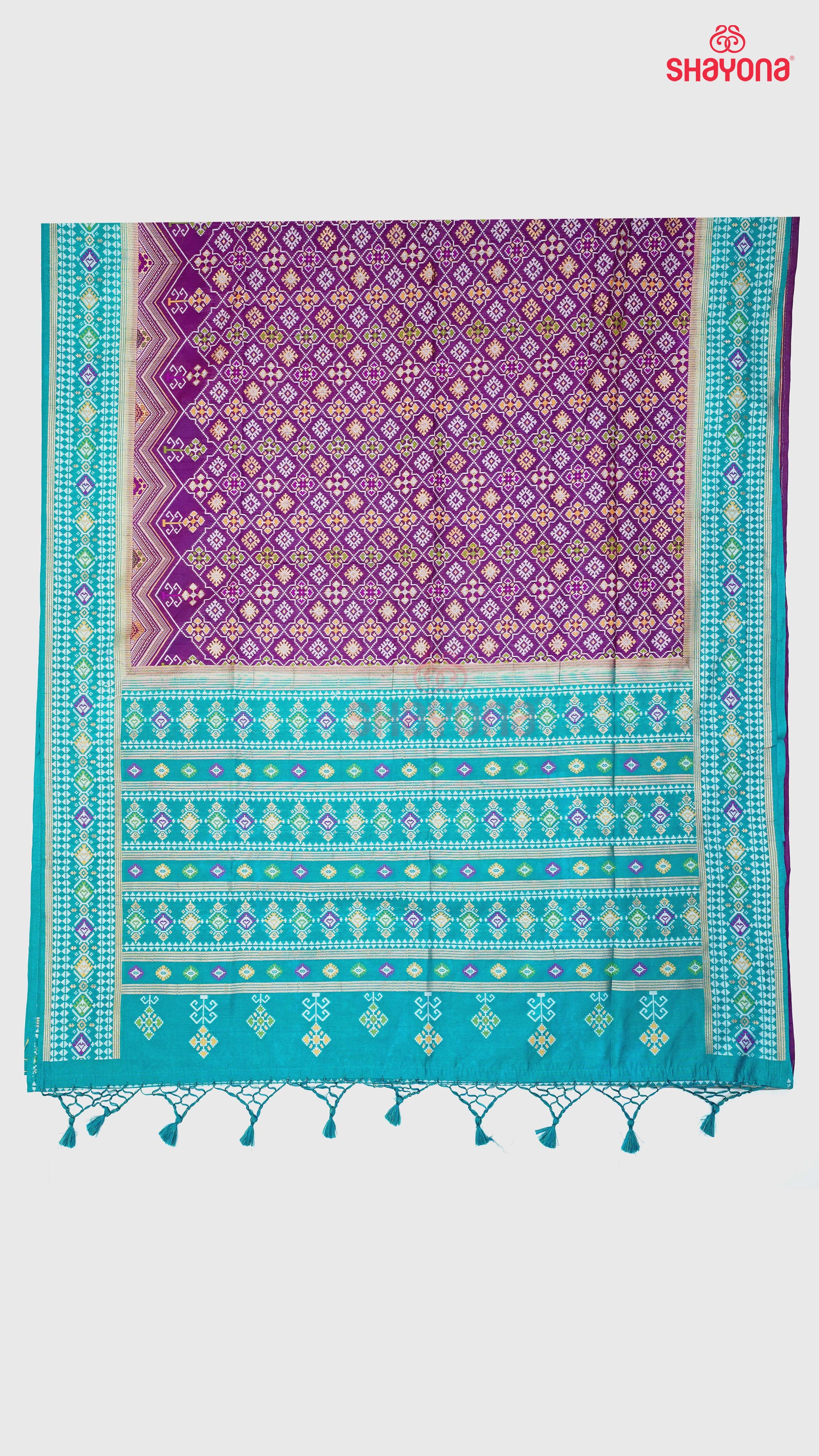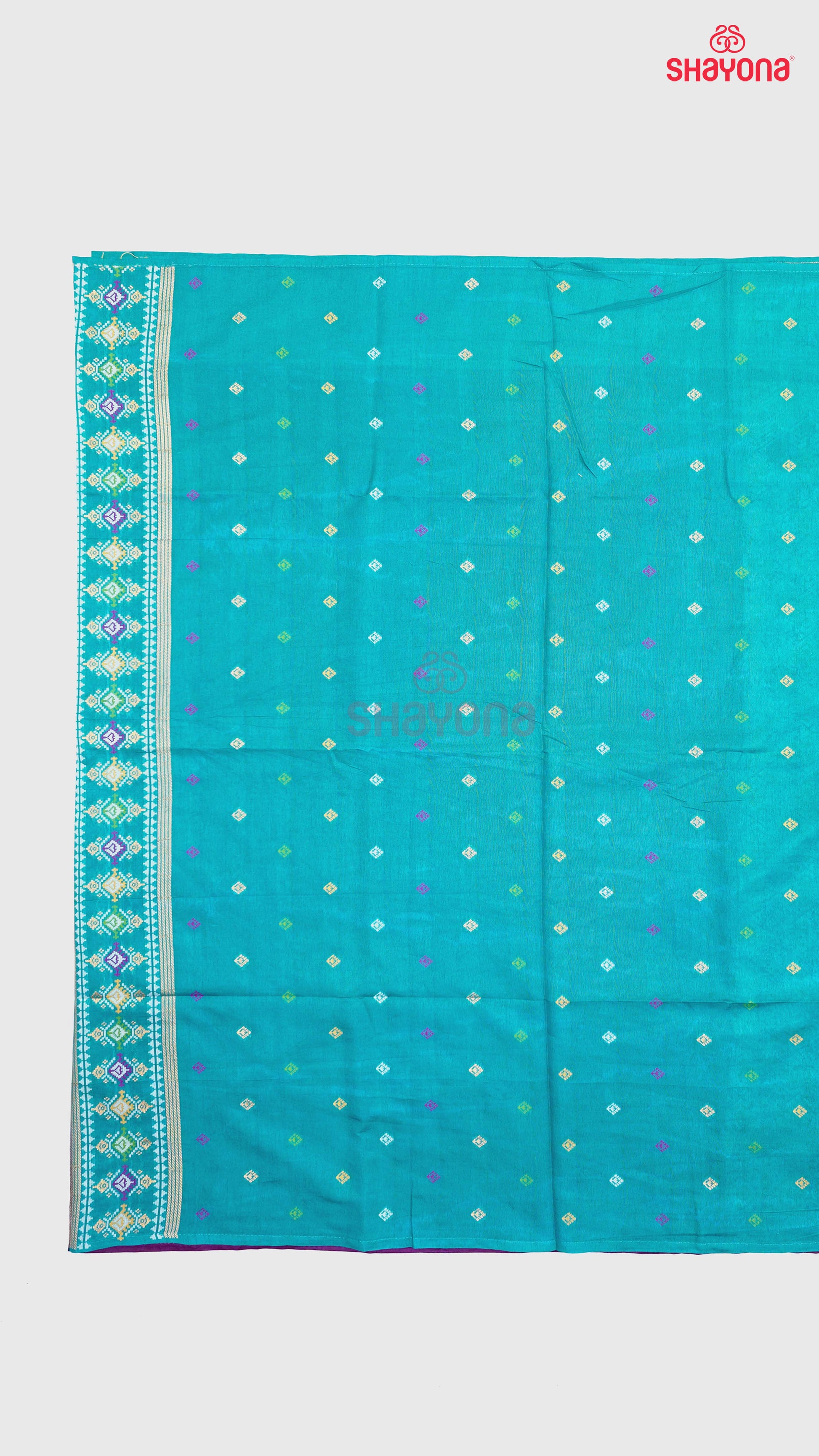 Dark Purple & Cadet Blue Ghicha Art Silk Saree