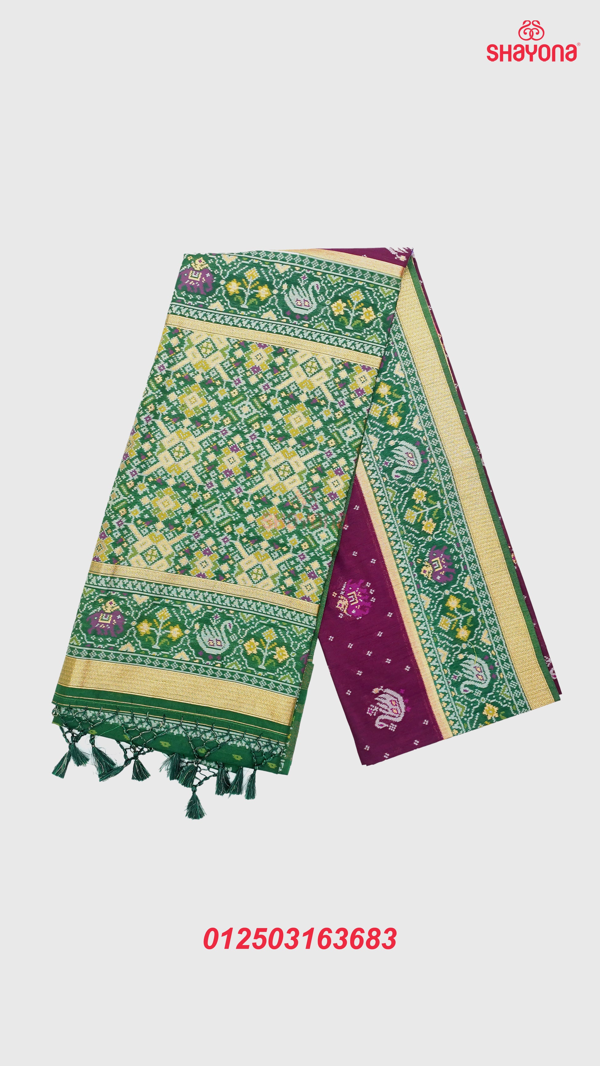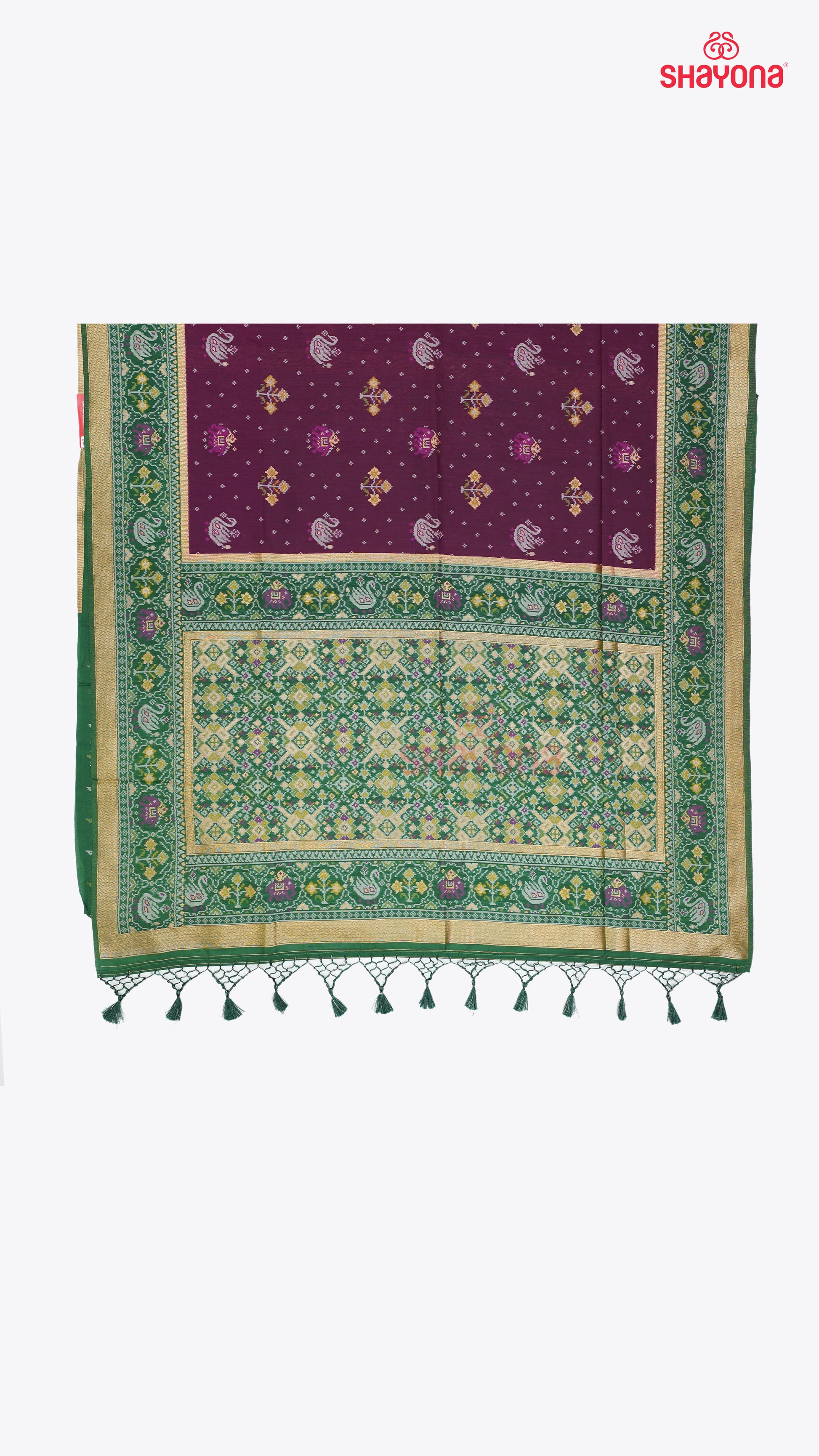 Dark Purple & Dark Green Ghicha Art Silk Saree