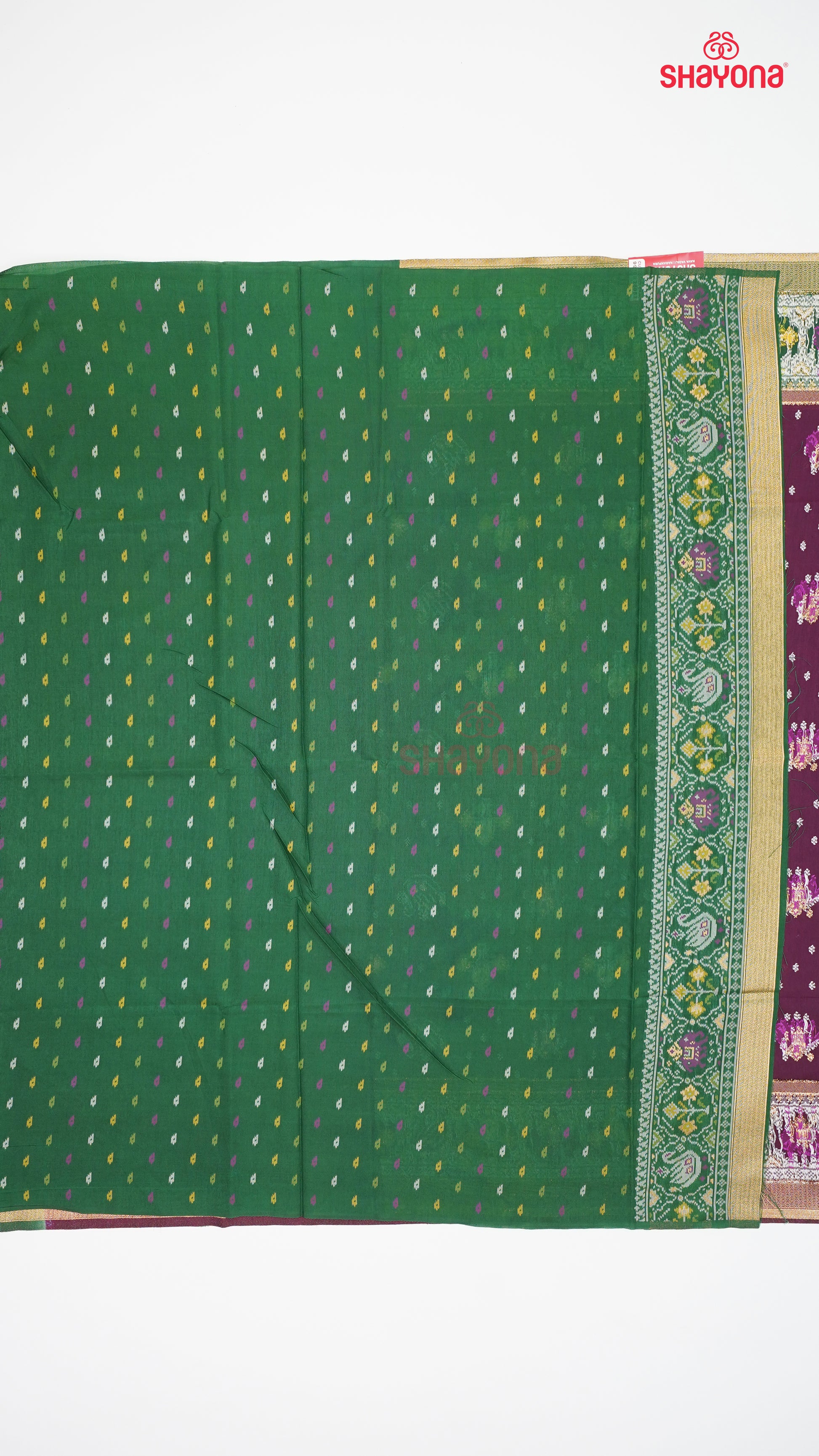 "Celebrate Rich Tradition – Dark Purple & Green Ghicha Silk Saree with Butta and Nakshi Border"