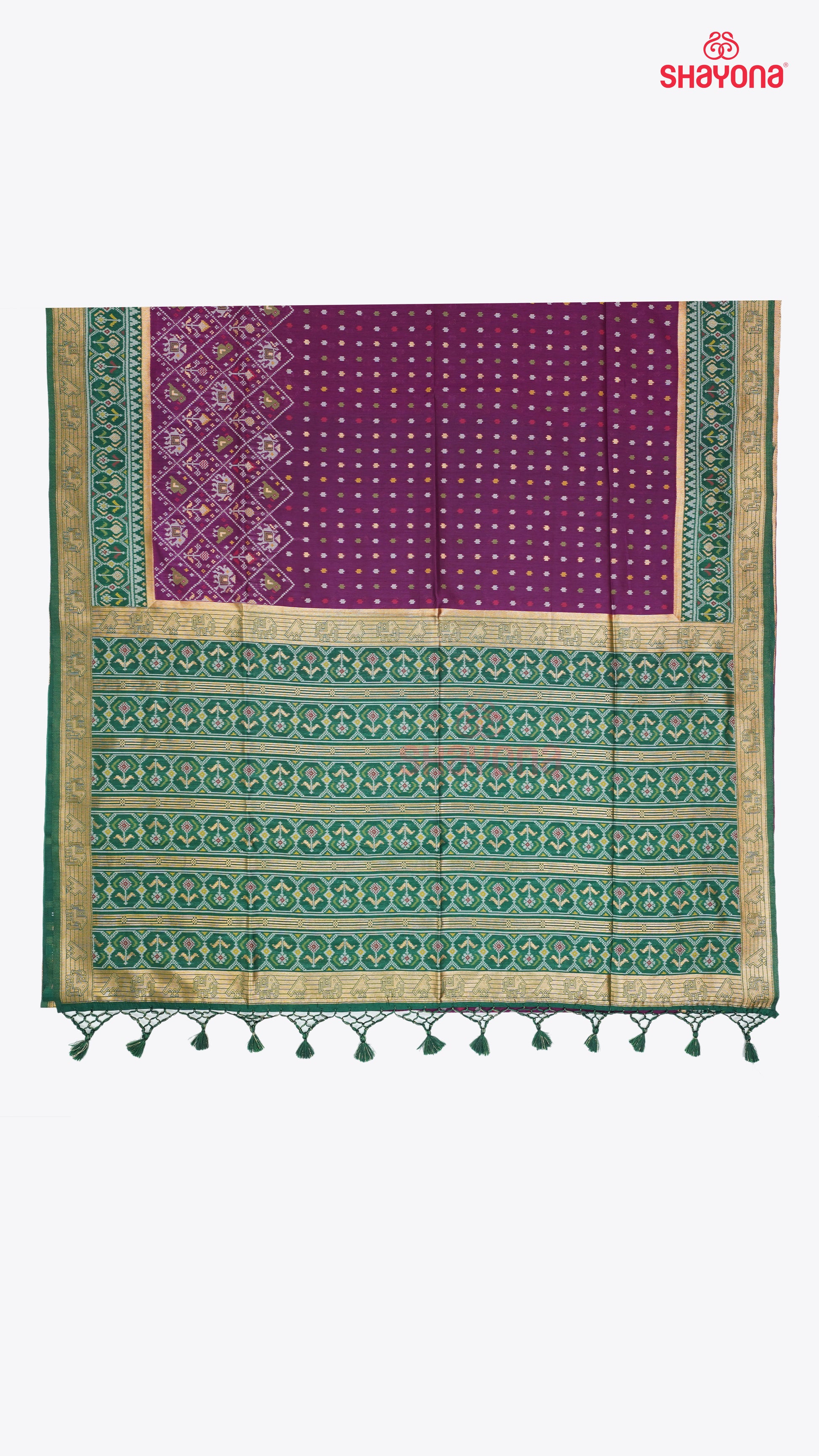 Dark Purple & Pomona Green Ghicha Art Silk Saree