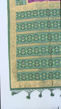 "Timeless Threads, Regal Contrast – Dark Purple & Pomona Green Ghicha Saree with Nakshi Elegance"