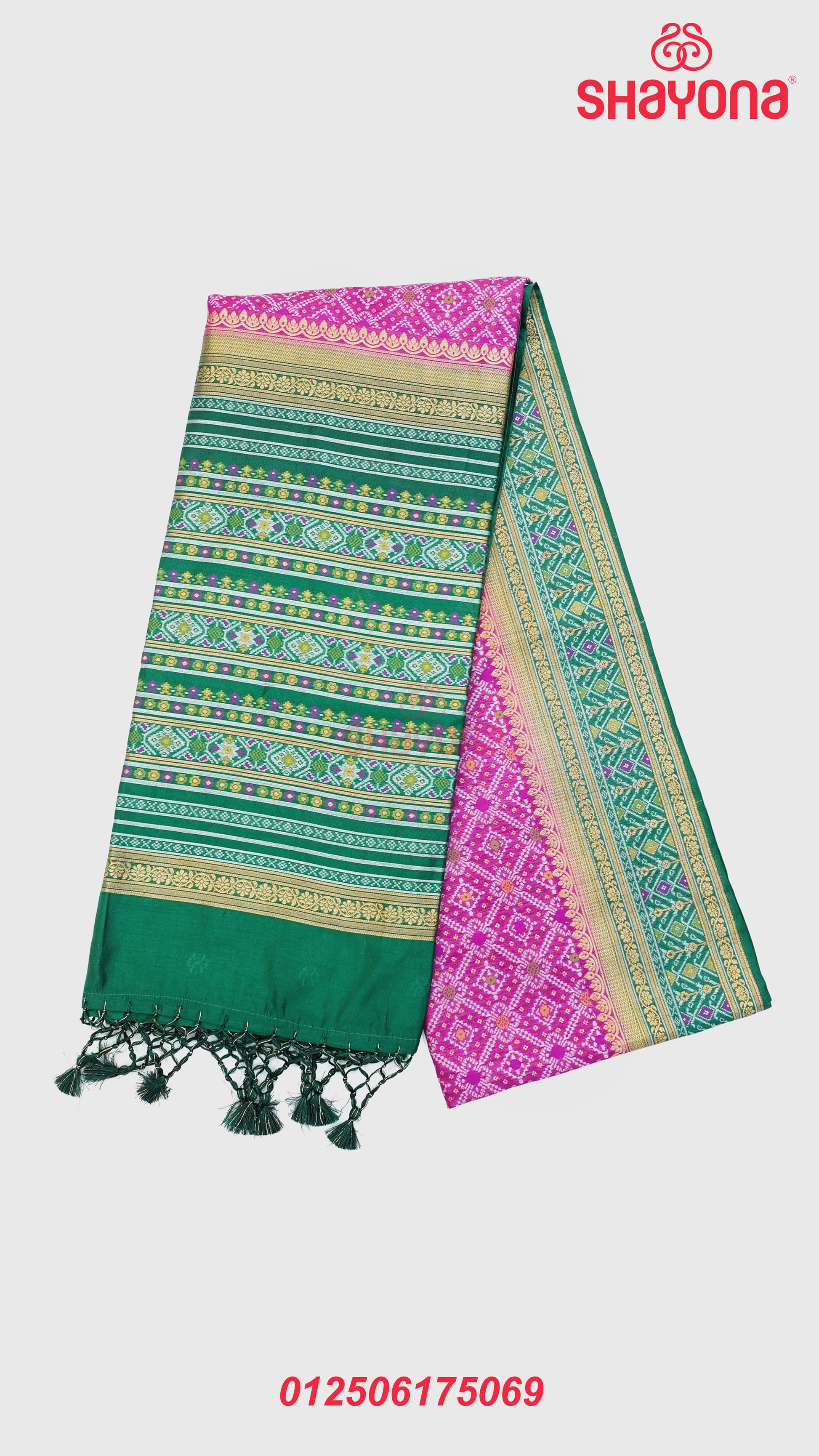 “Wrap Yourself in Royal Grace – Dark Violet Red & Dark Green Ghicha Silk Saree for Timeless Beauty”