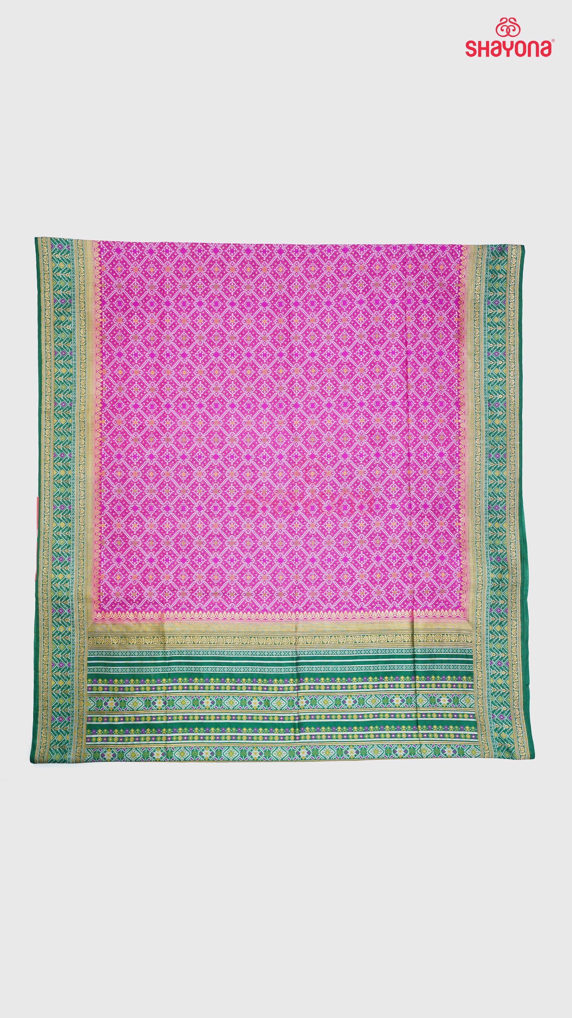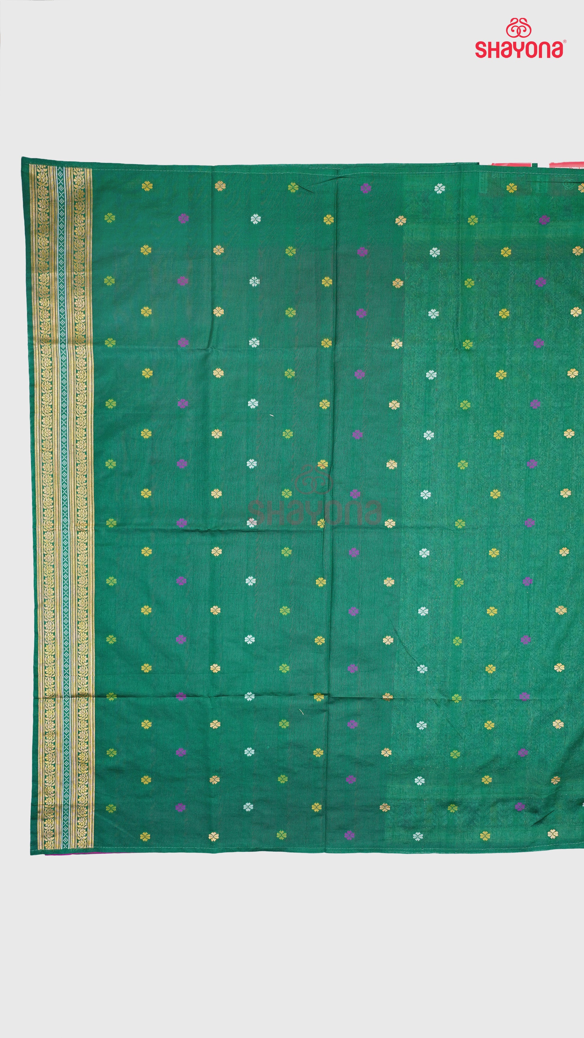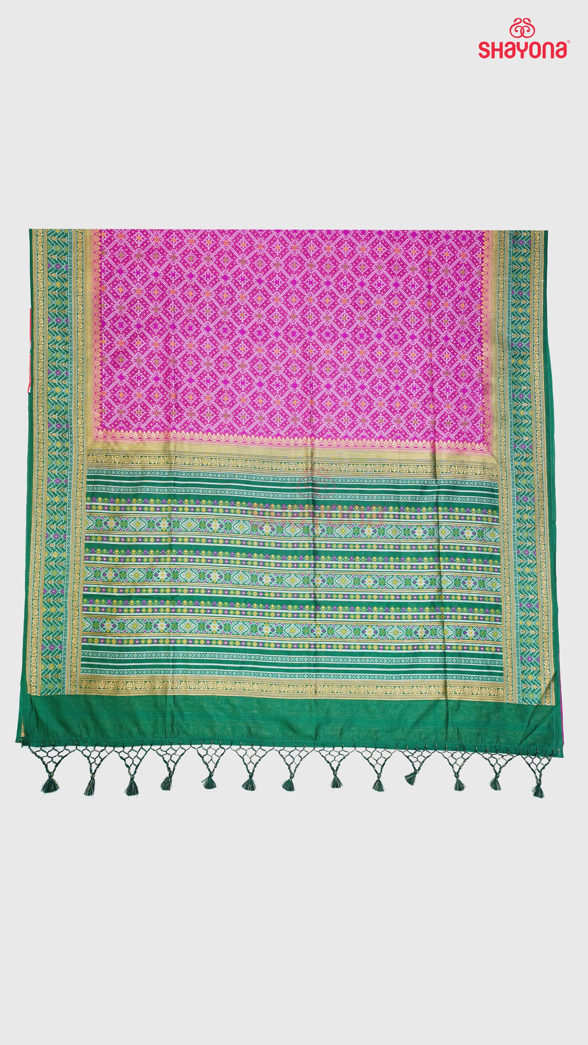 Dark Violet Red & Dark Green Ghicha Art Silk Saree