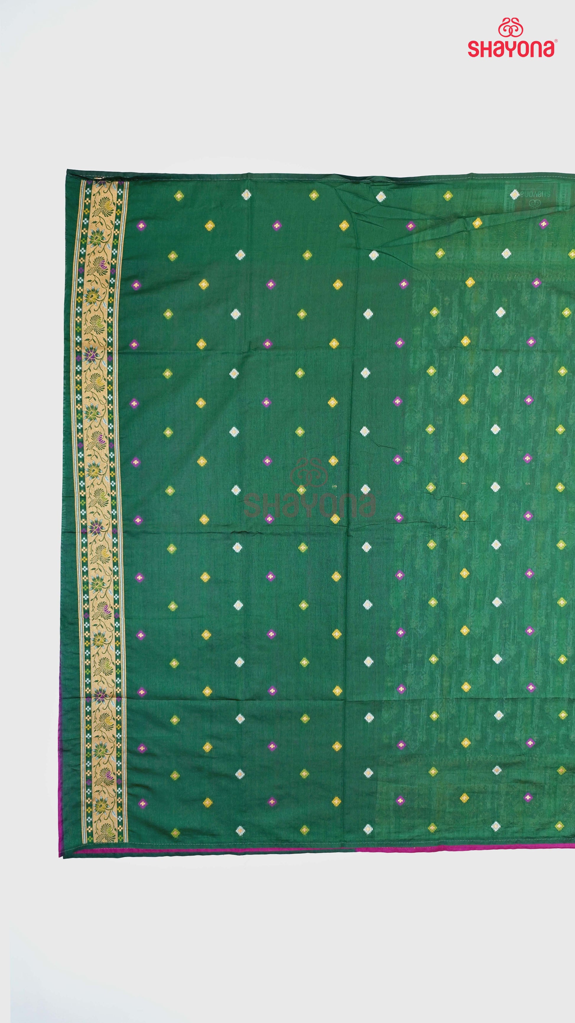 #GhichaArtSilk#MinakariElegance#PomonaGreenSaree#DarkVioletRedSaree#NakshiWeaves#HandwovenLuxury#ShayonaSarees#JaalWorkSaree#IndianEthnicWear#ArtSilkTradition