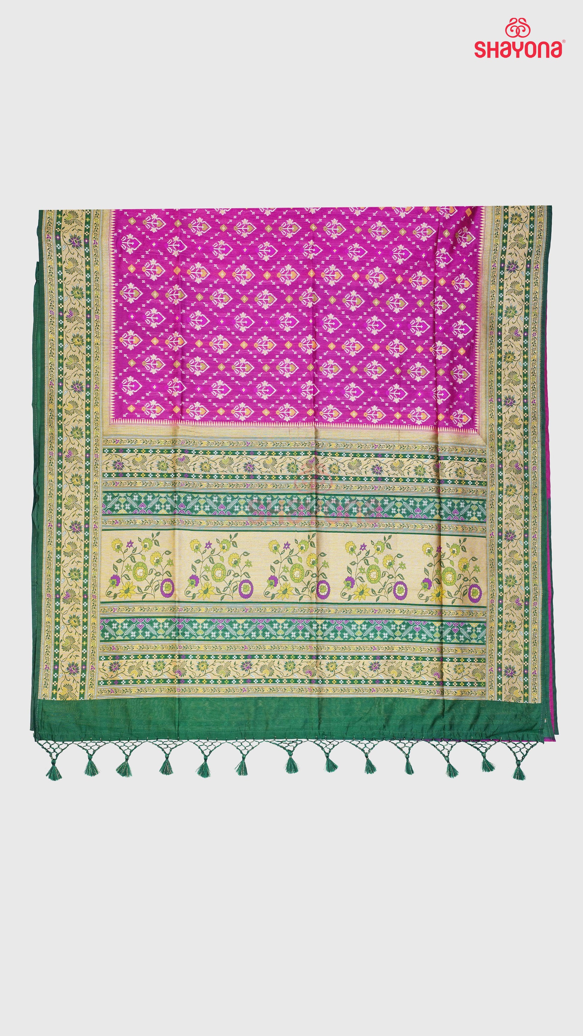 Dark Violet Red & Pomona Green Ghicha Art Silk Saree