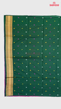 The striking contrast of deep violet red and refreshing pomona green adds vibrant elegance to your festive or wedding look. Crafted from fine Ghicha art silk, the texture is both rustic and regal — perfect for those who love timeless craftsmanship with contemporary color play.
