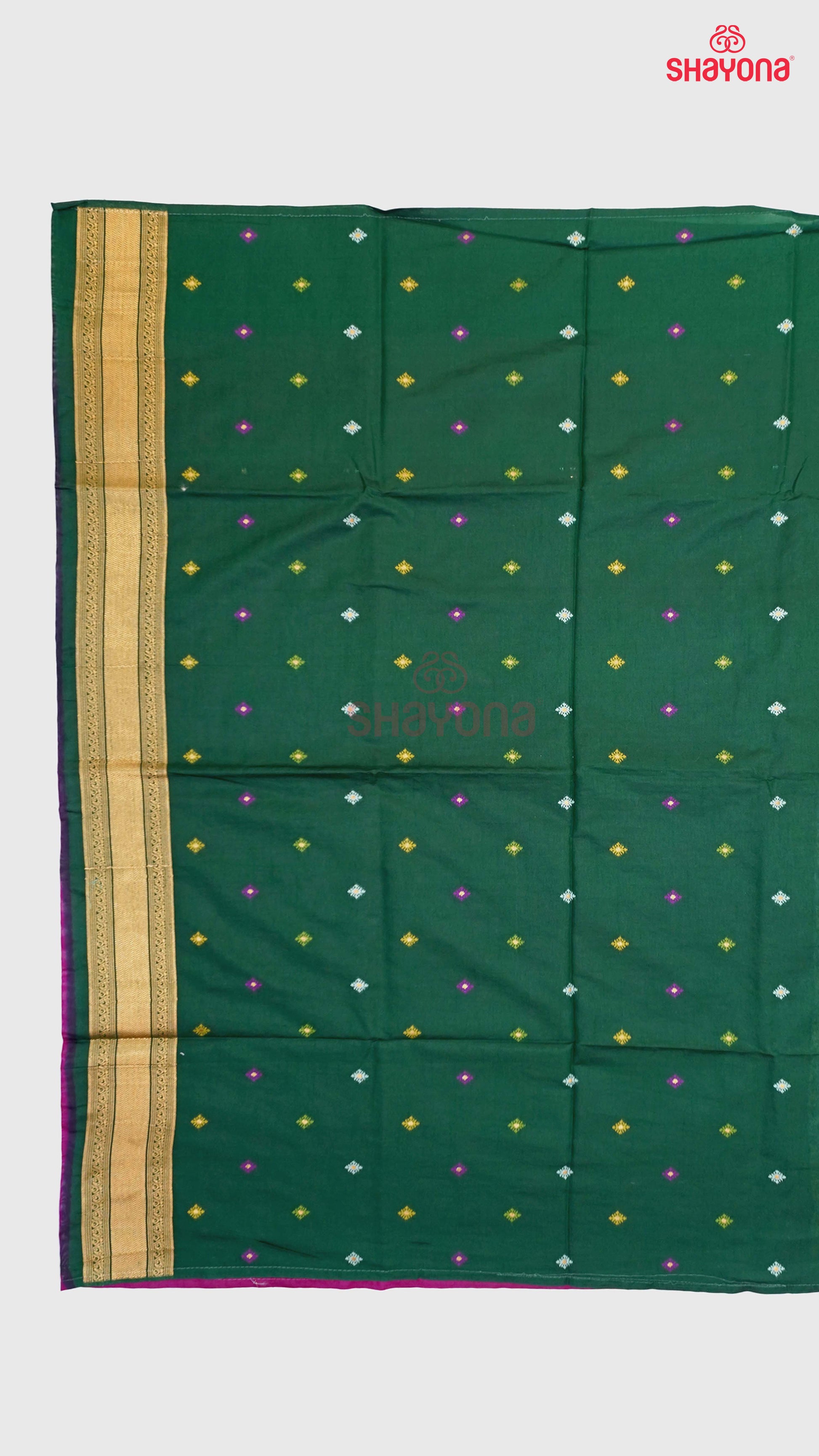 “Woven Traditions in Every Thread – Dark Violet Red & Pomona Green Ghicha Art Silk Saree”