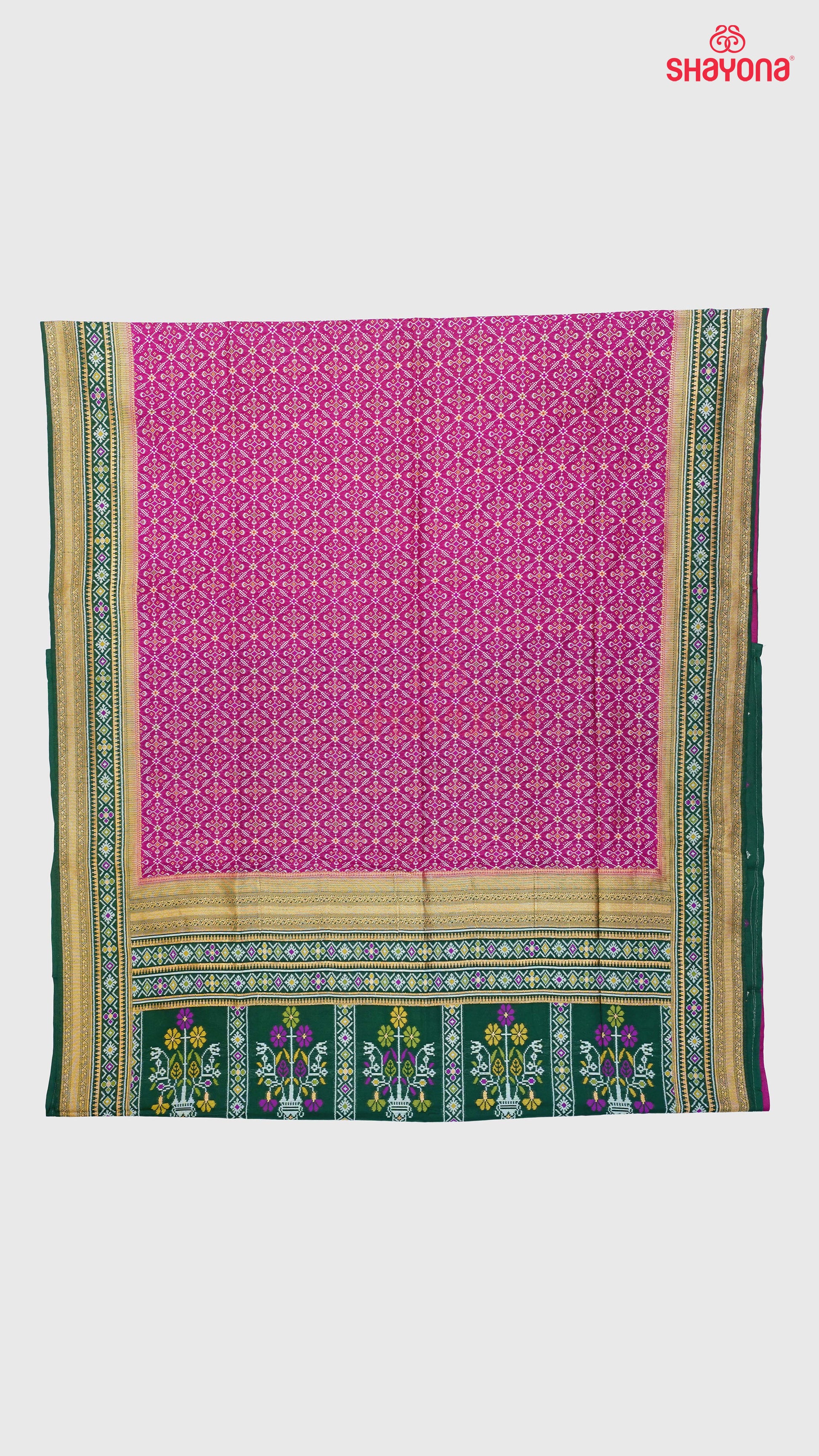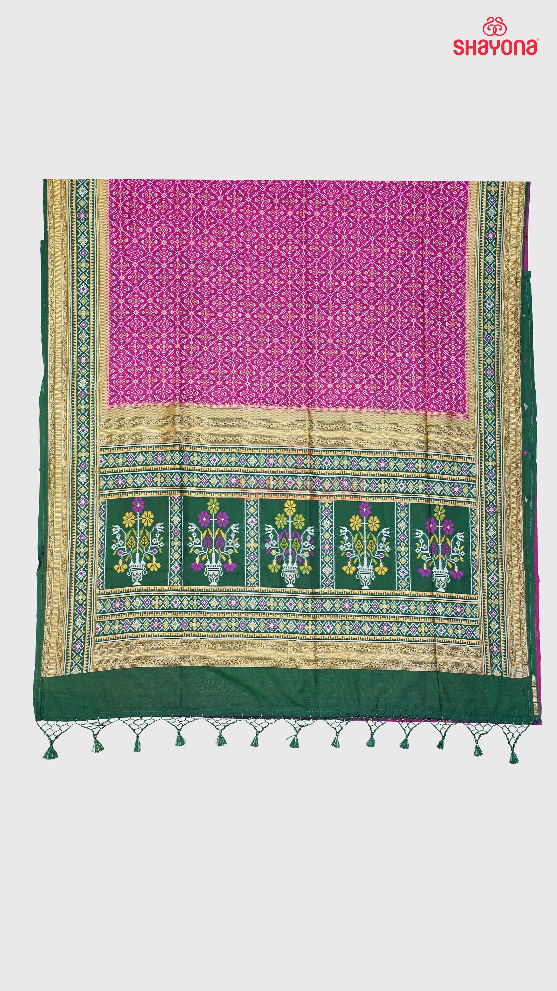 Dark Violet Red & Pomona Green Ghicha Art Silk Saree