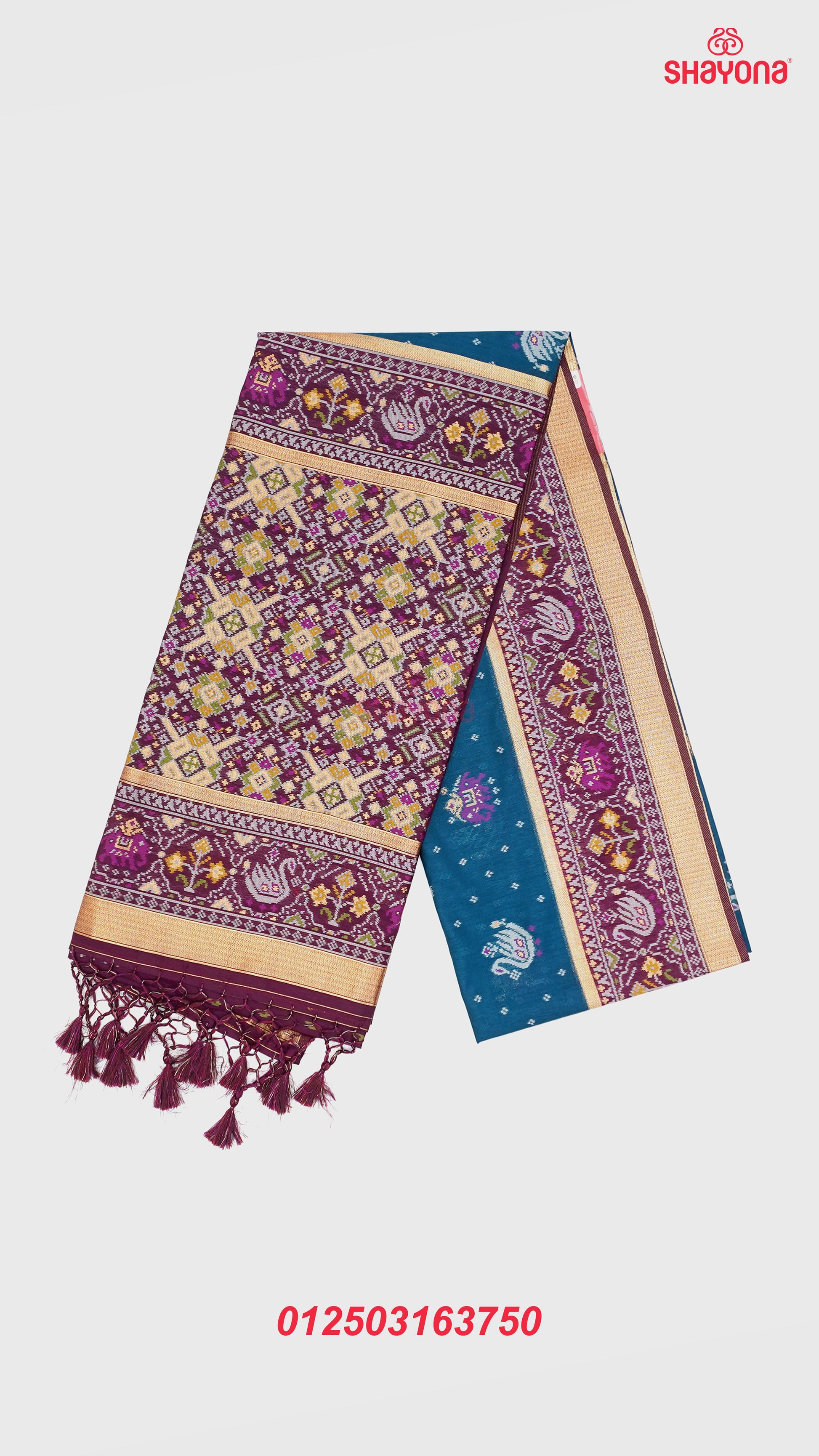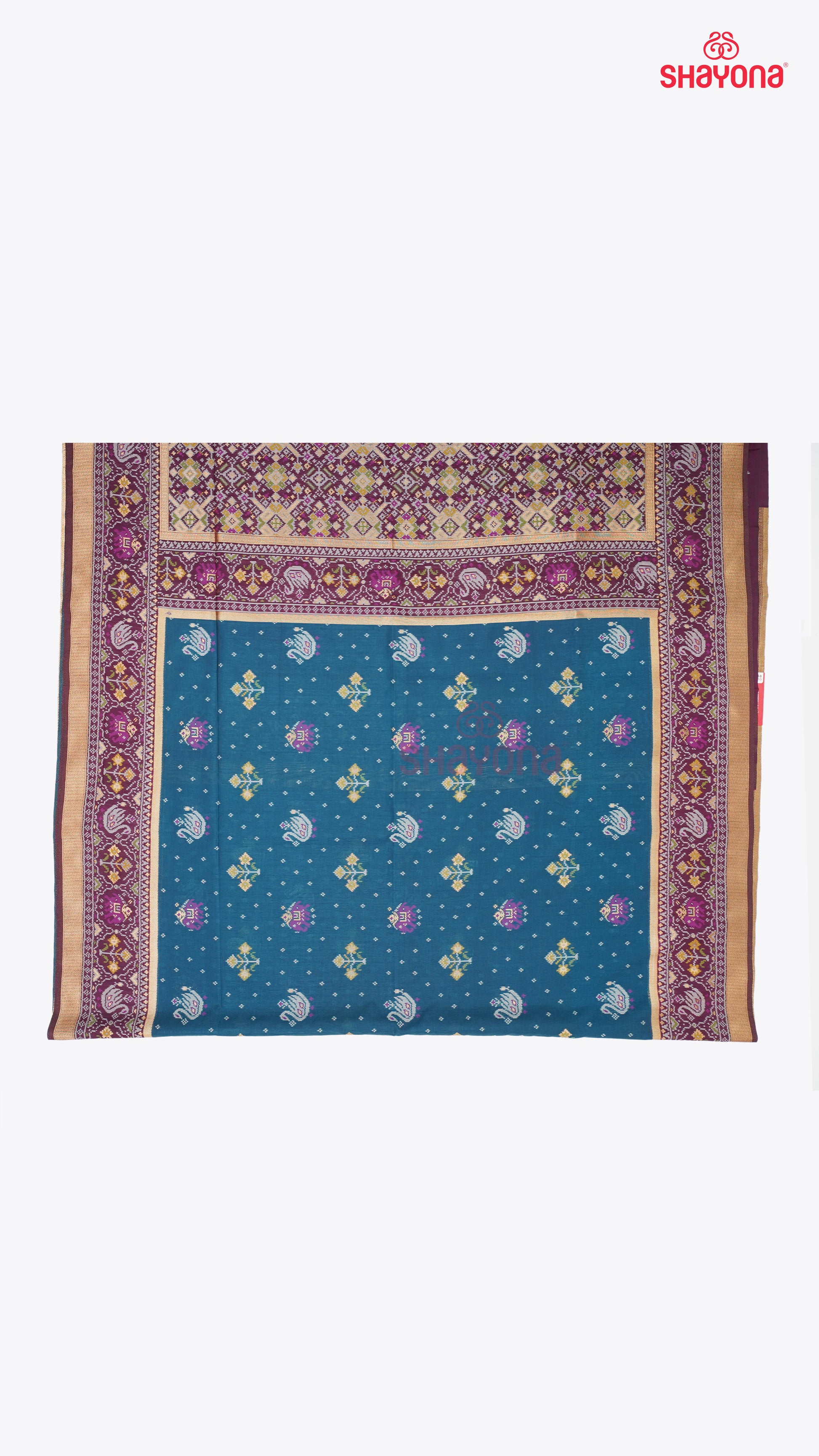 Deep Steel Blue & Wine Ghicha Art Silk Saree