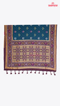 "Bold Beauty in Weave – Deep Steel Blue & Wine Ghicha Silk Saree with Butta & Nakshi Border"