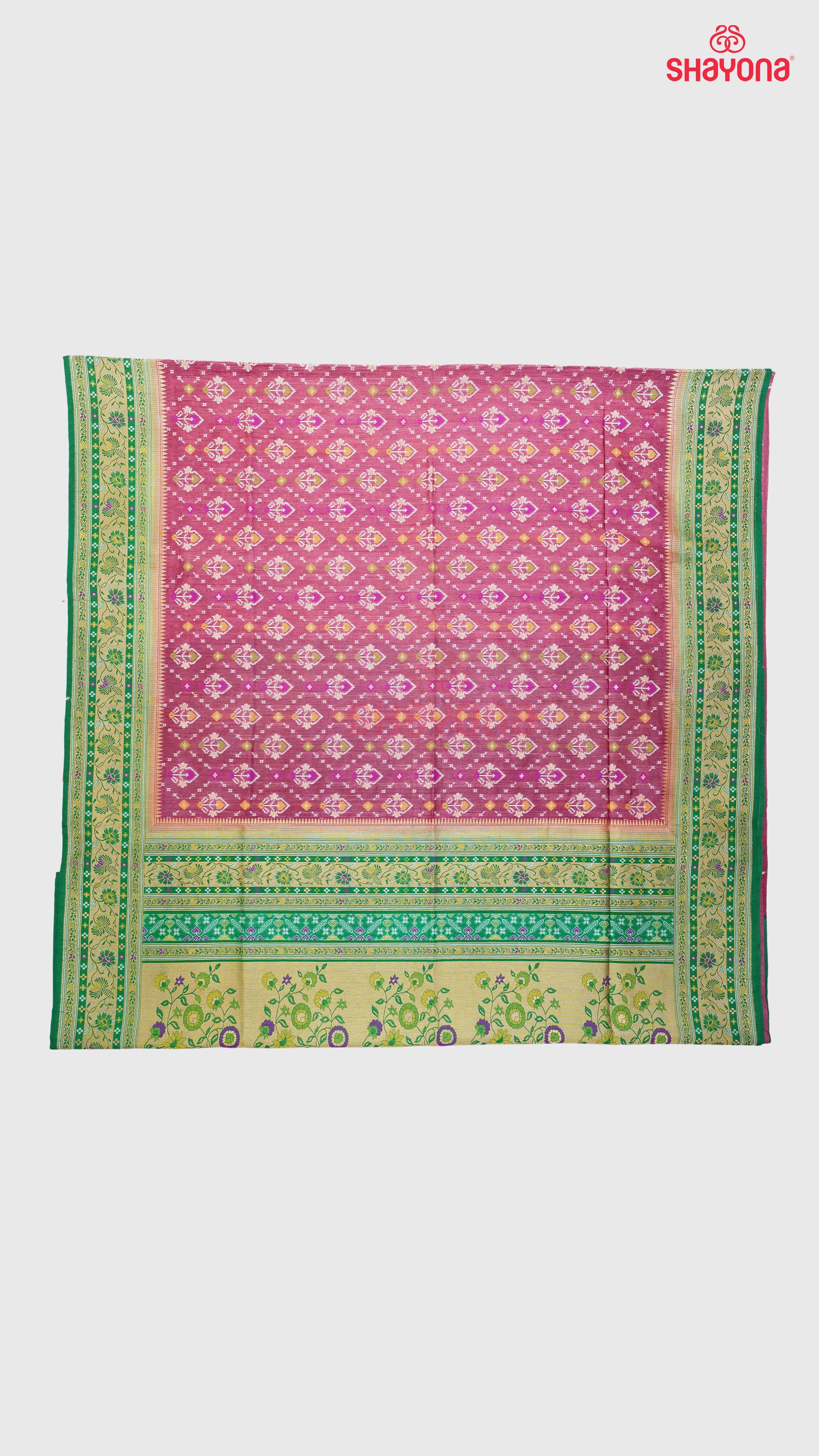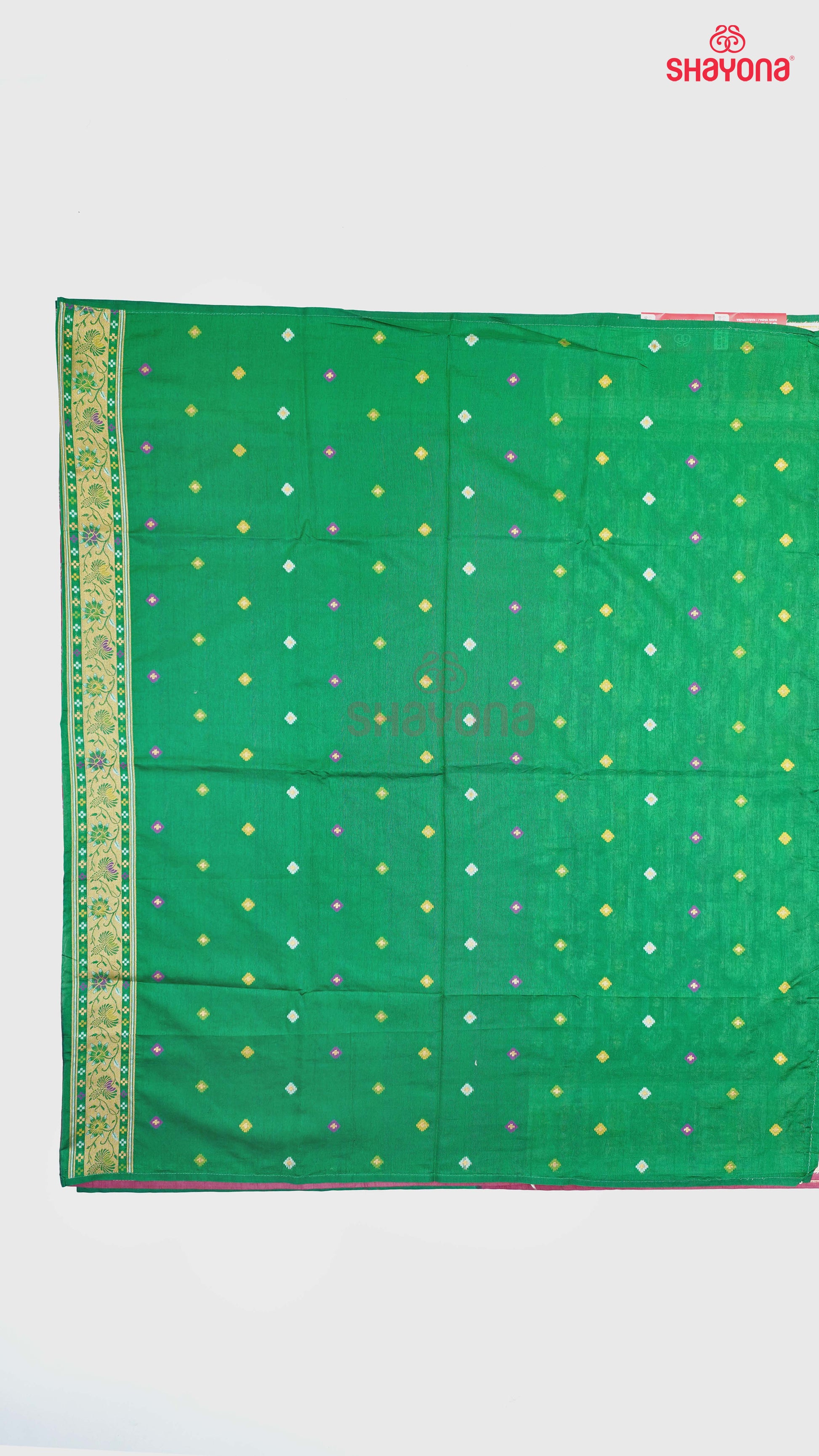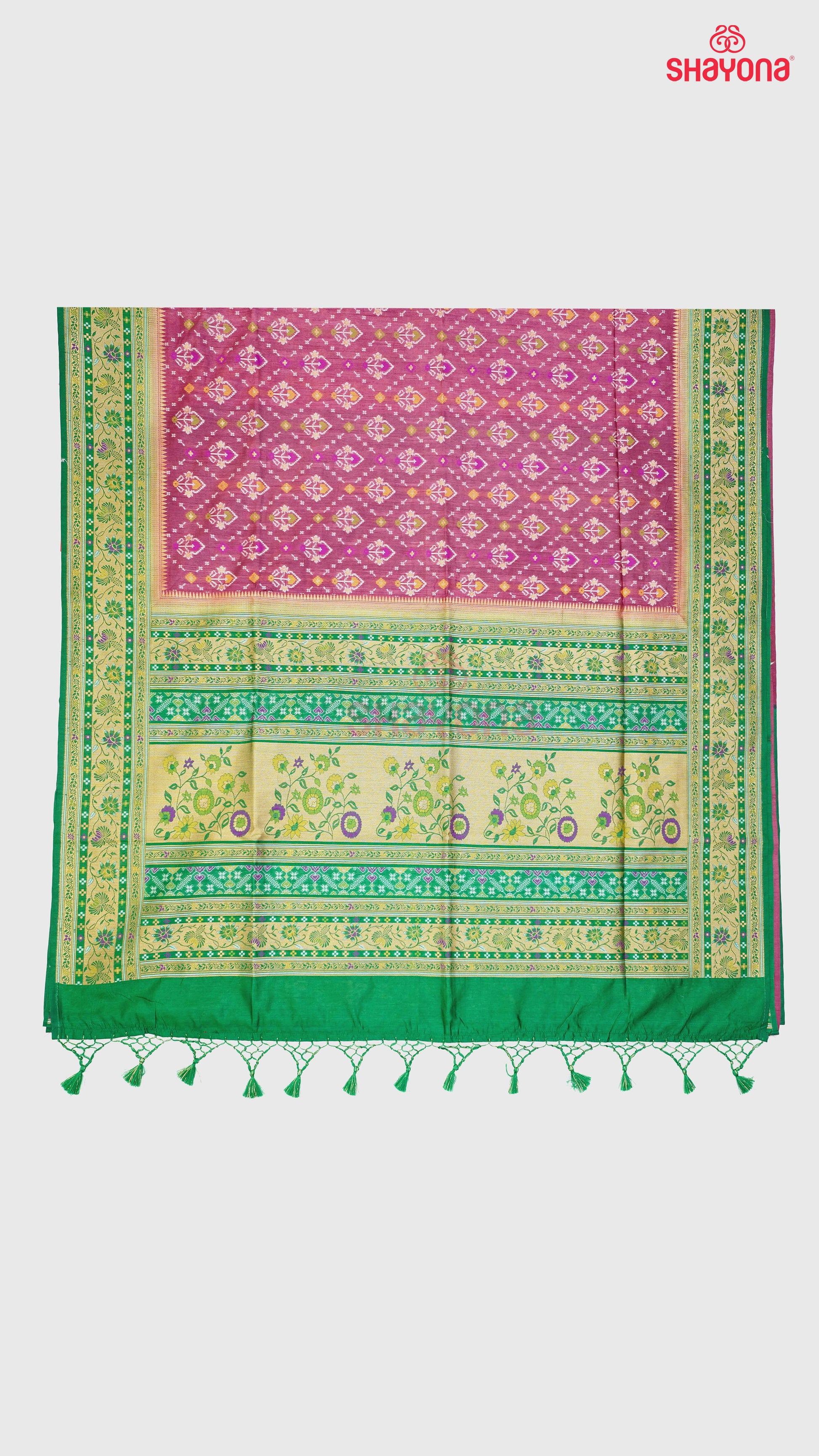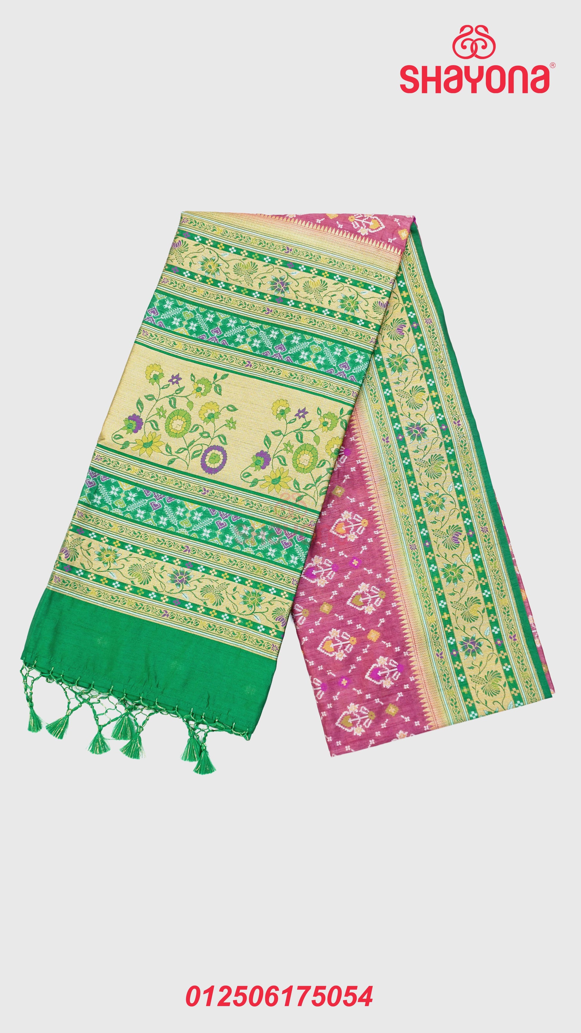 Medium Onion & Pomona Green Ghicha Art Silk Saree with Minakari work