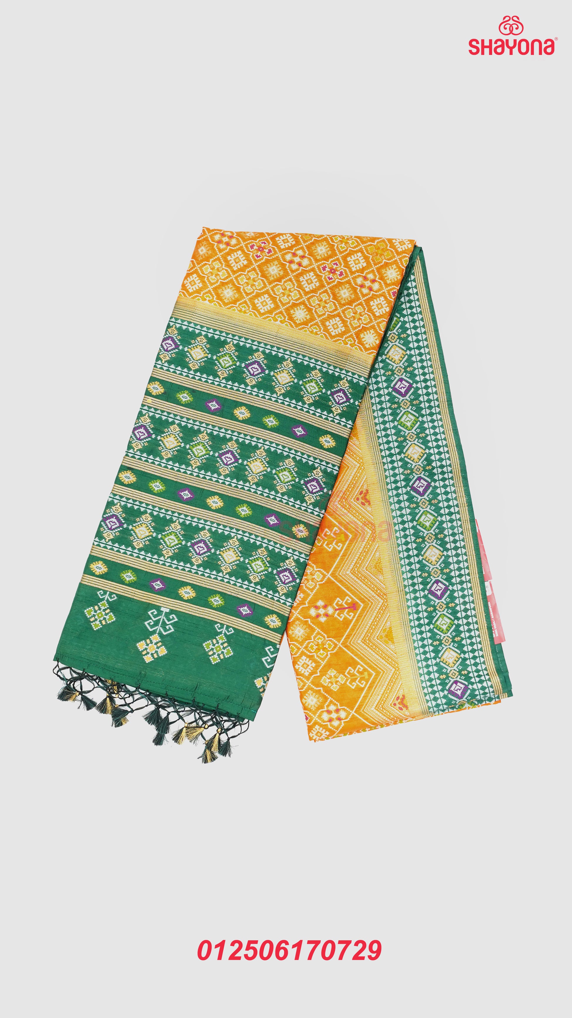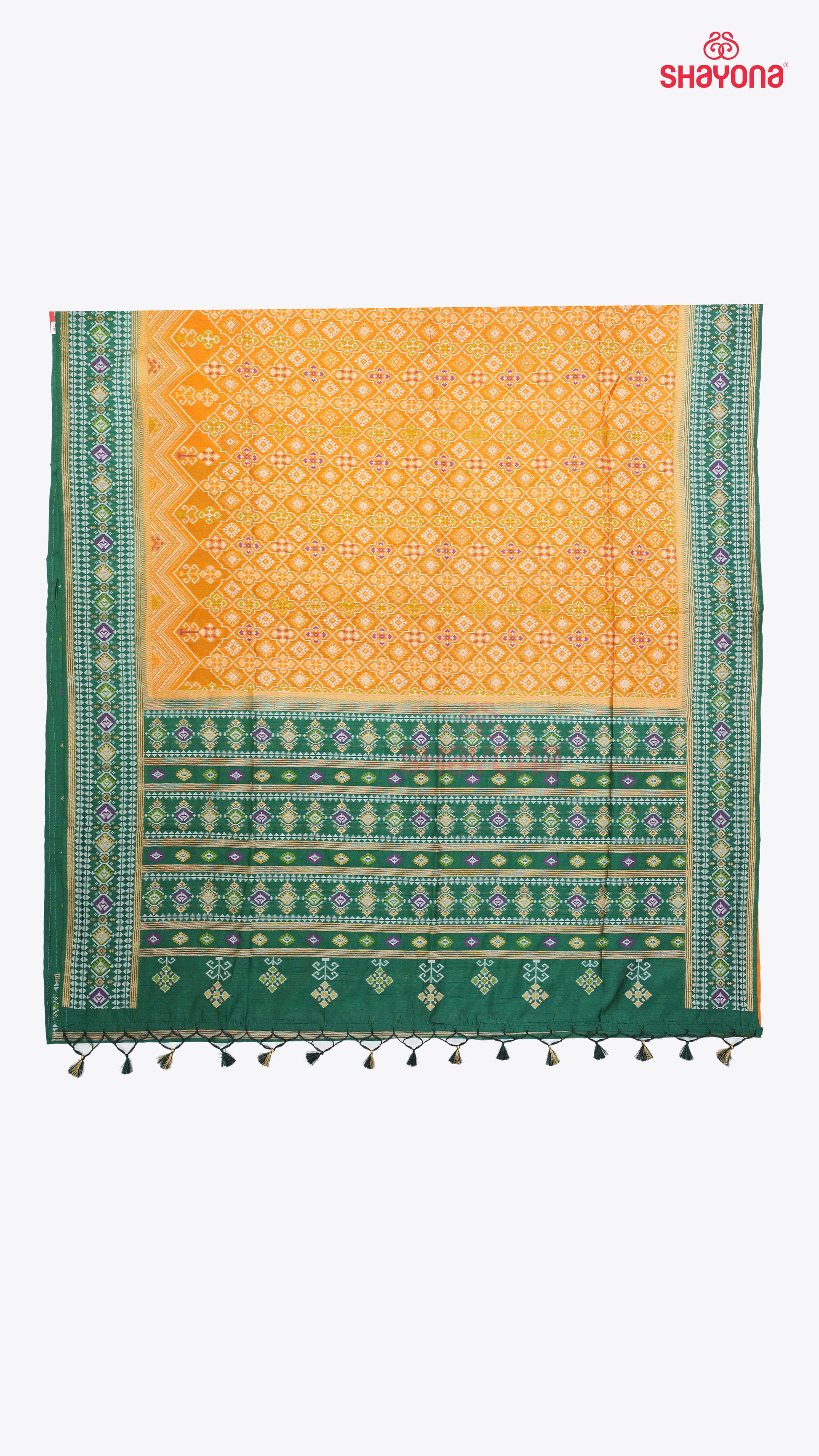 Mustard & Pomona Green Ghicha Art Silk Saree