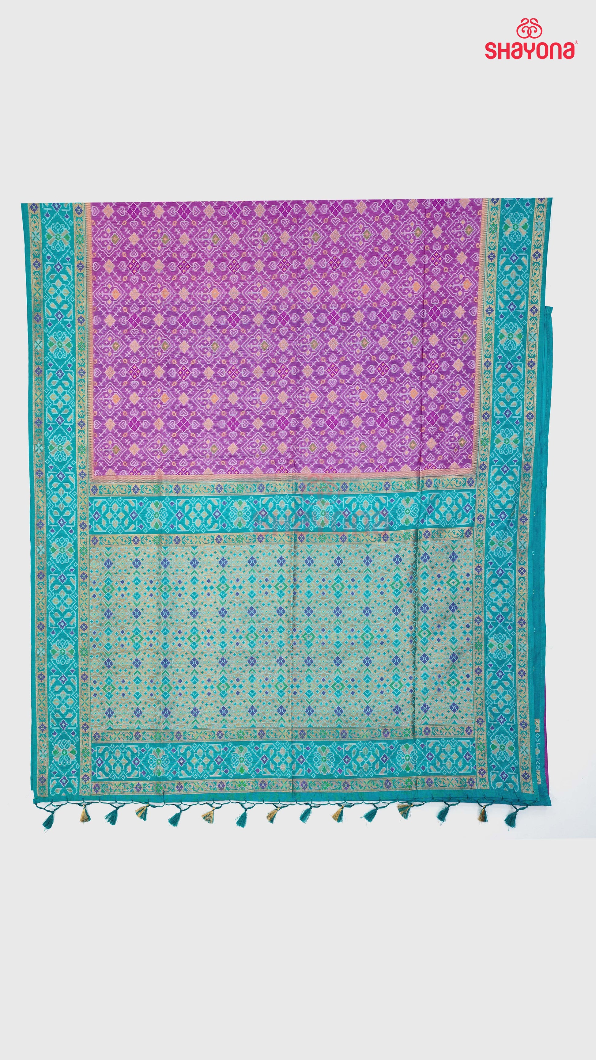 Onion Purple & Cadet Blue Ghicha Art Silk Saree