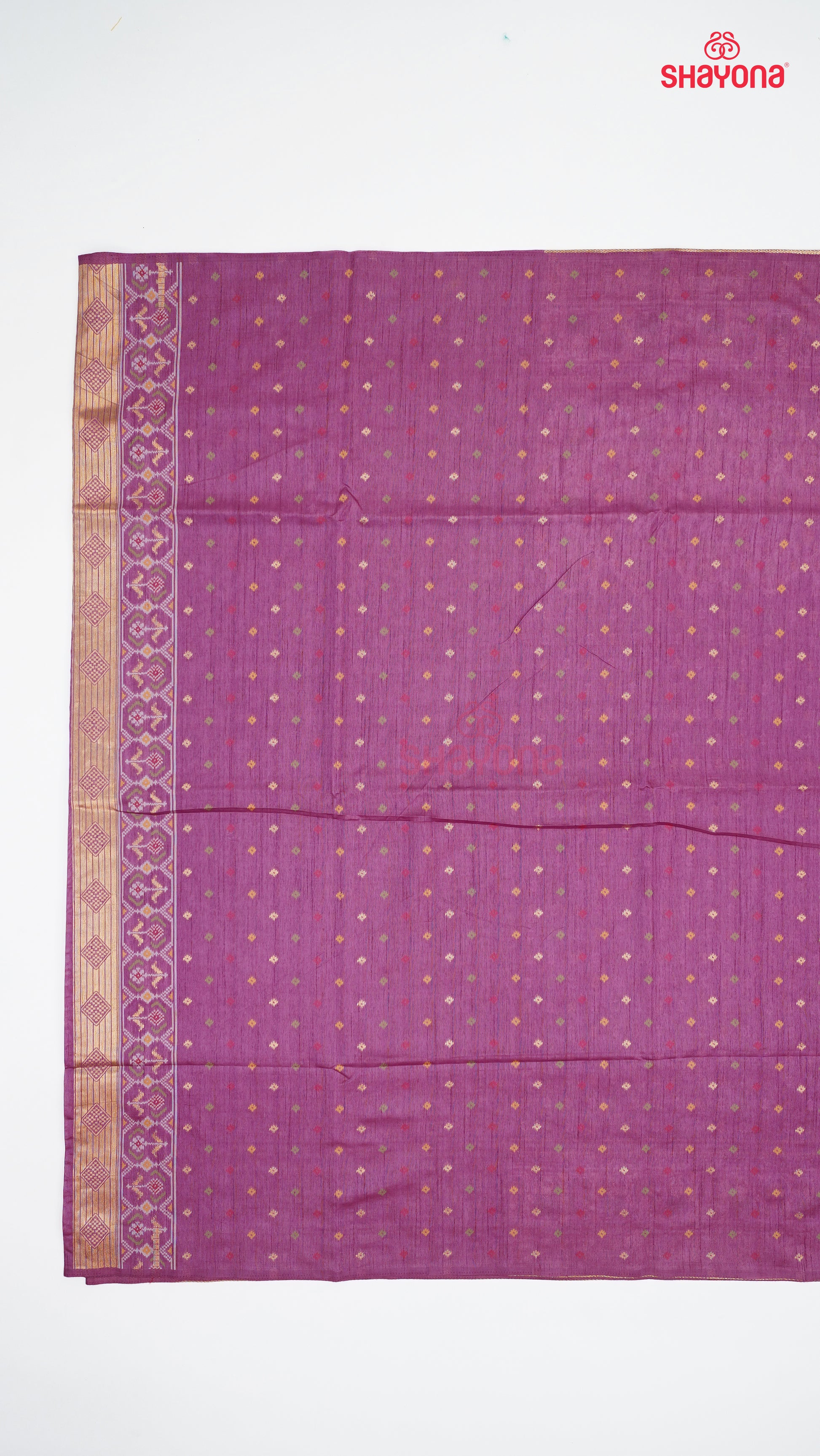"Grace in Every Thread – Onion Purple Ghicha Silk Saree with All-Over Jaal & Nakshi Finish"