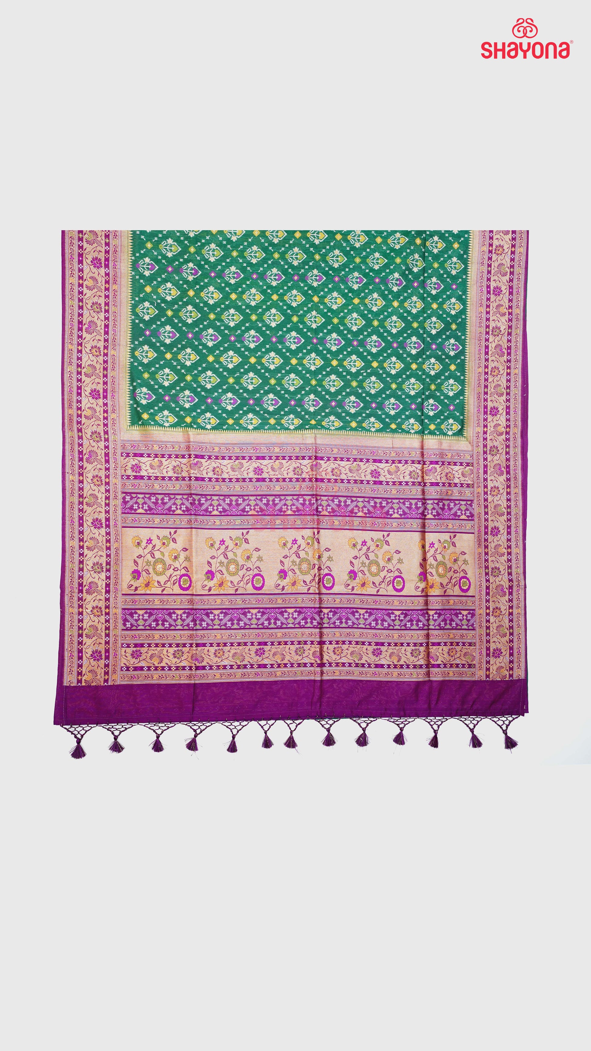 “Bold Tradition in Every Thread – Pomona Green Elegance with Royal Purple Accents”