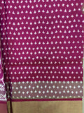 Pattern: Classic geometric and traditional motifs woven across the saree