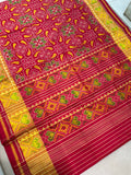 • Border & Pallu: Richly woven contrast borders with classic Patola elements