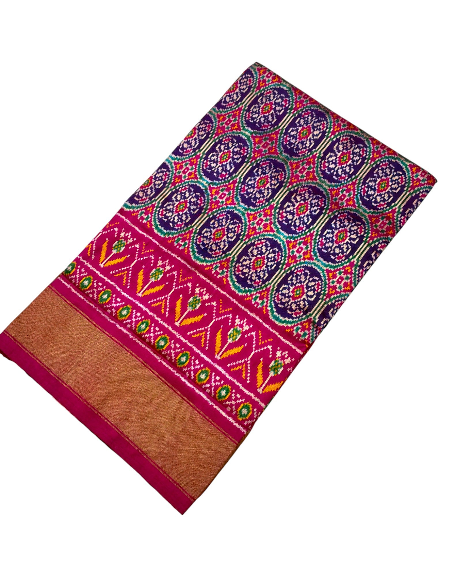 Step into timeless elegance with our Pure Silk Hyderabadi Patola Saree, where royal craftsmanship meets vibrant tradition. Adorned with intricate geometric and floral motifs and finished with a rich contrast border, this saree reflects the grandeur of heritage Indian textiles.