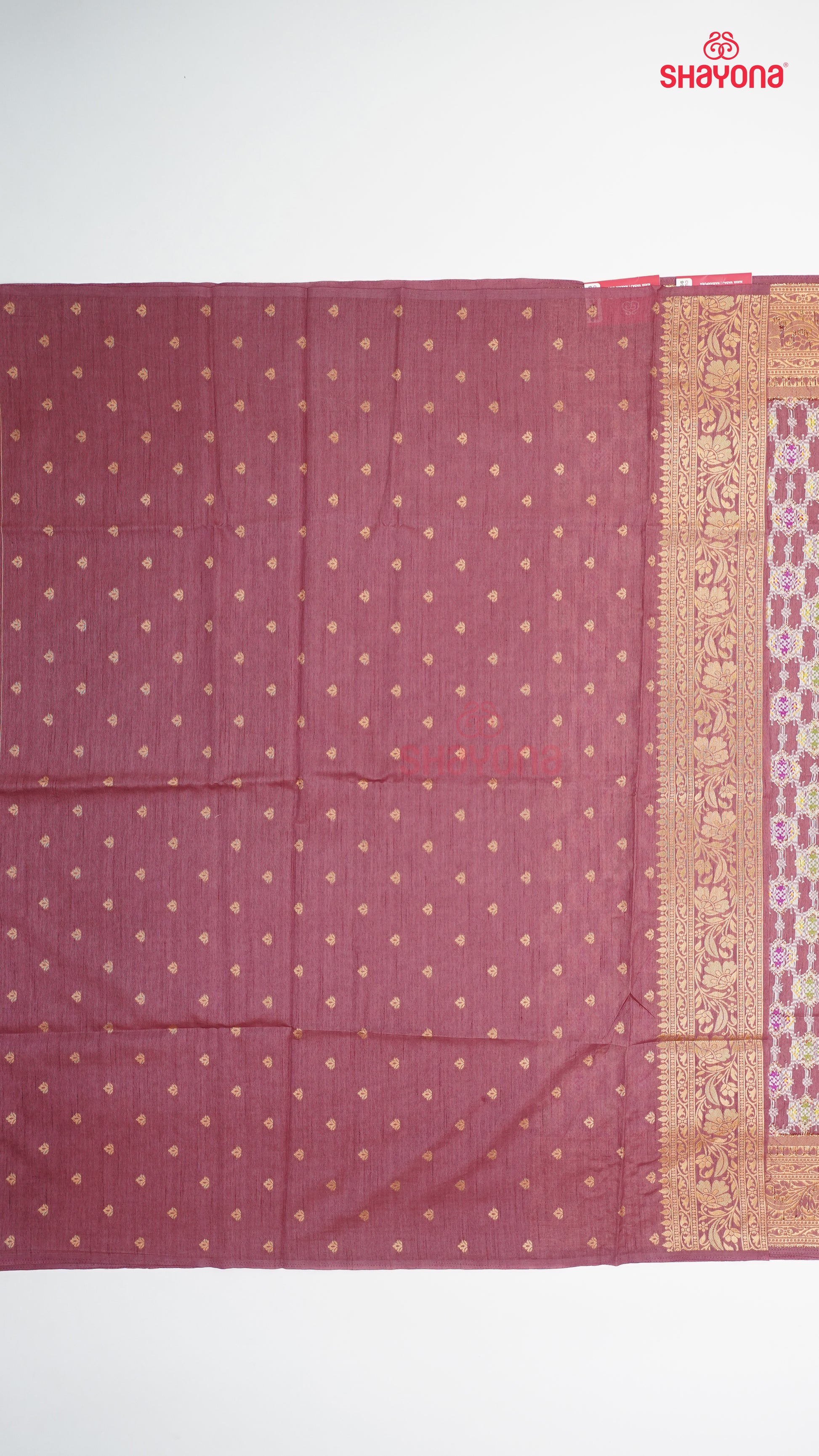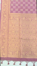 The intricately woven nakshi border and grand pallav add regal elegance, while the soft sheen of rose gold radiates warmth and charm. Accompanied by a 0.80-meter matching weaved border blouse, this saree is ideal for festive occasions, weddings, or evening celebrations where elegance is key.