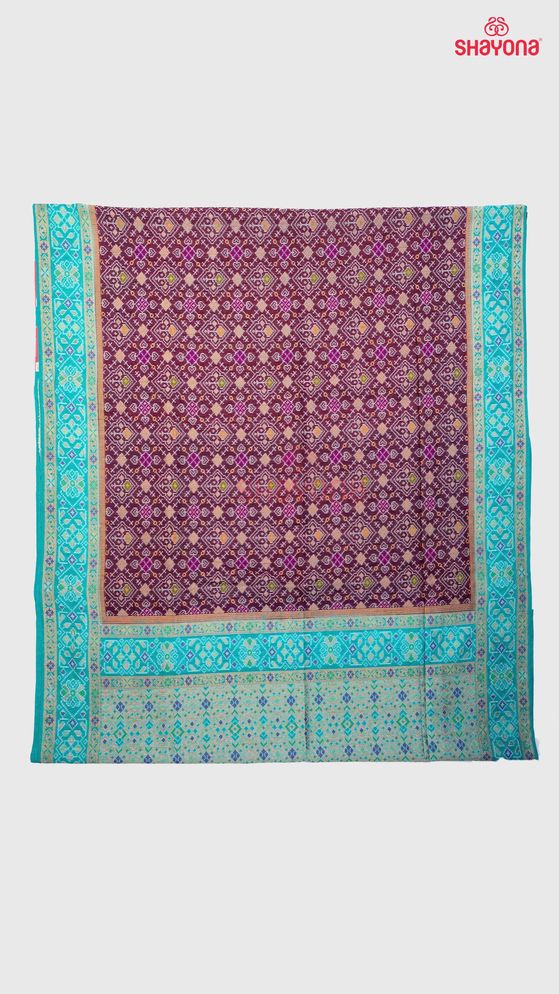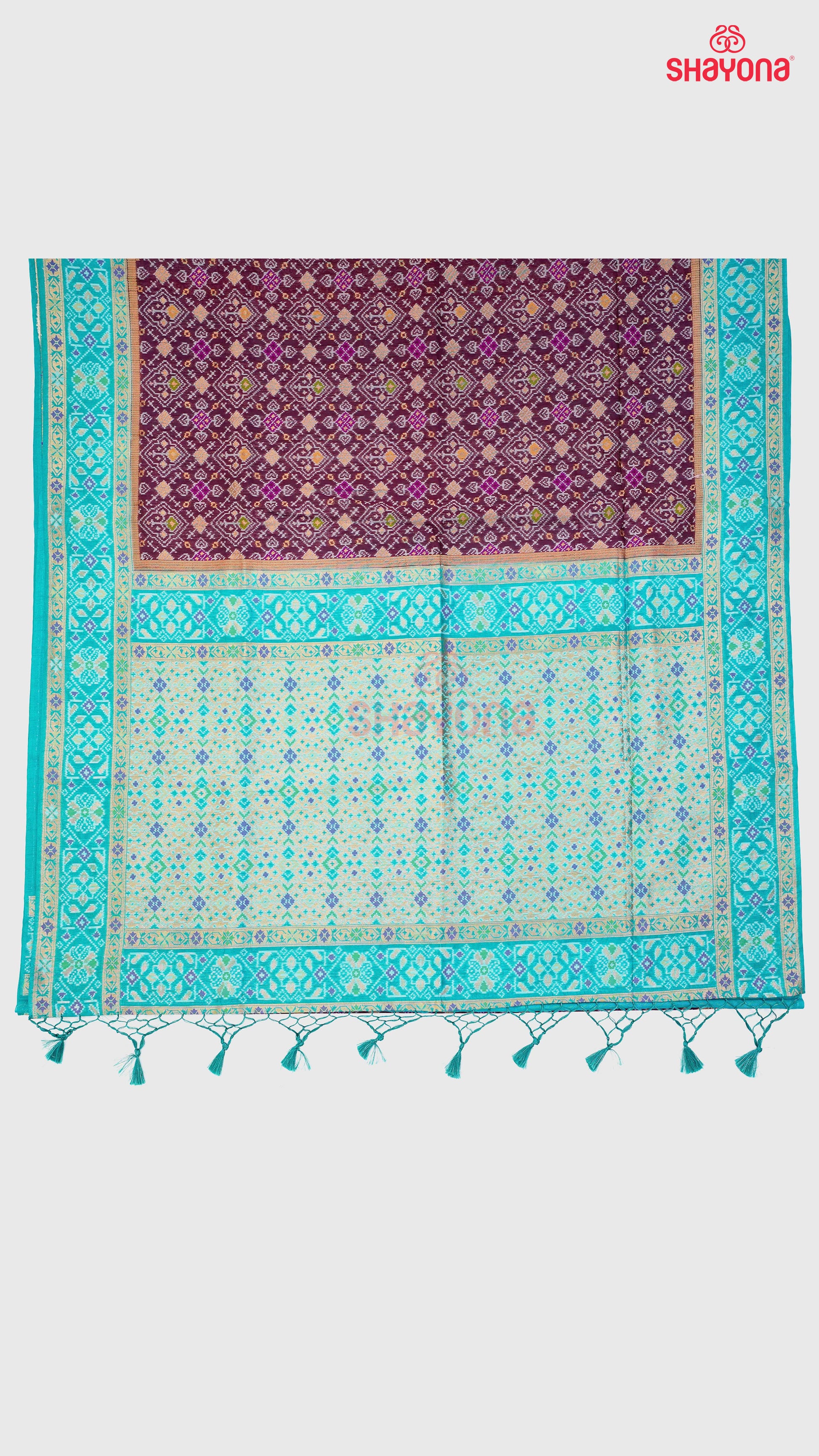 Wine & Cadet Blue Ghicha Art Silk Saree
