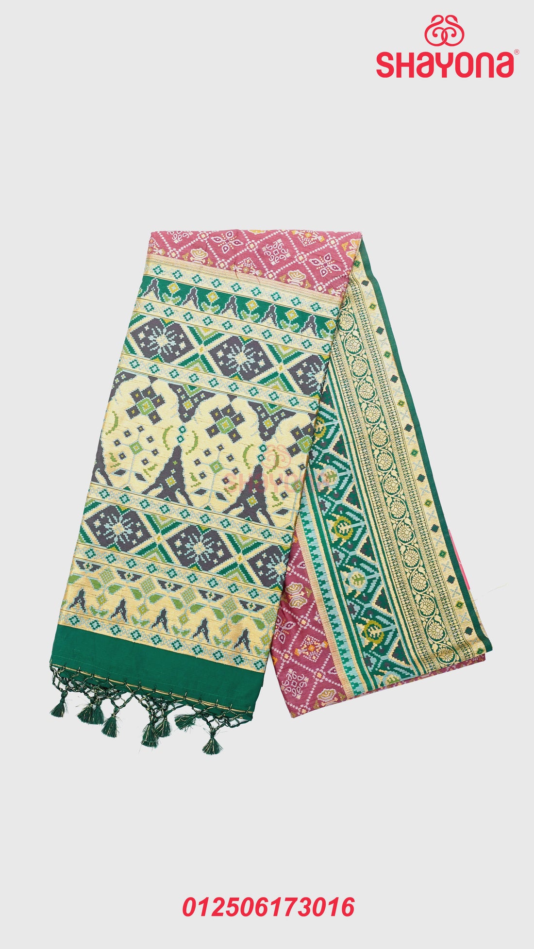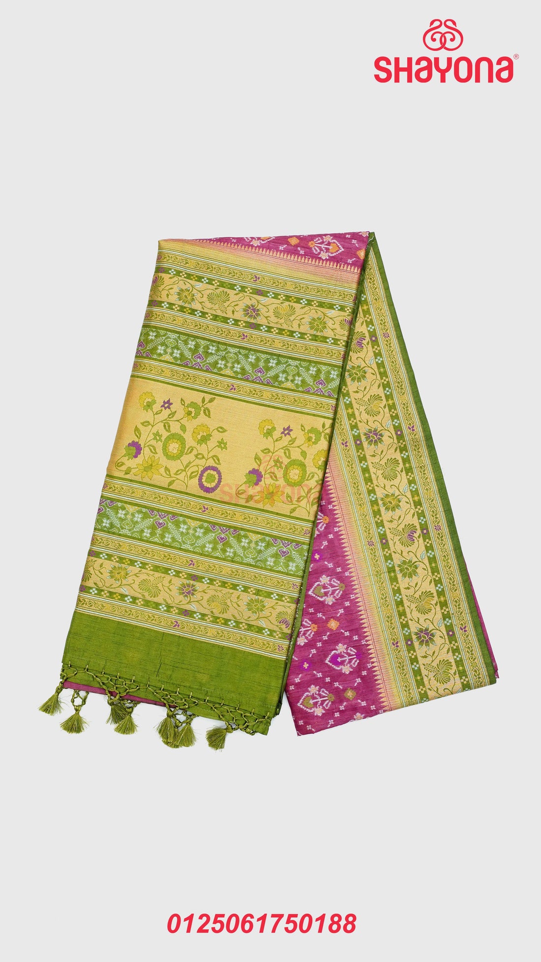 Product Description: Embrace the grace of heritage weaving with this exquisite Onion & Green Ghicha...