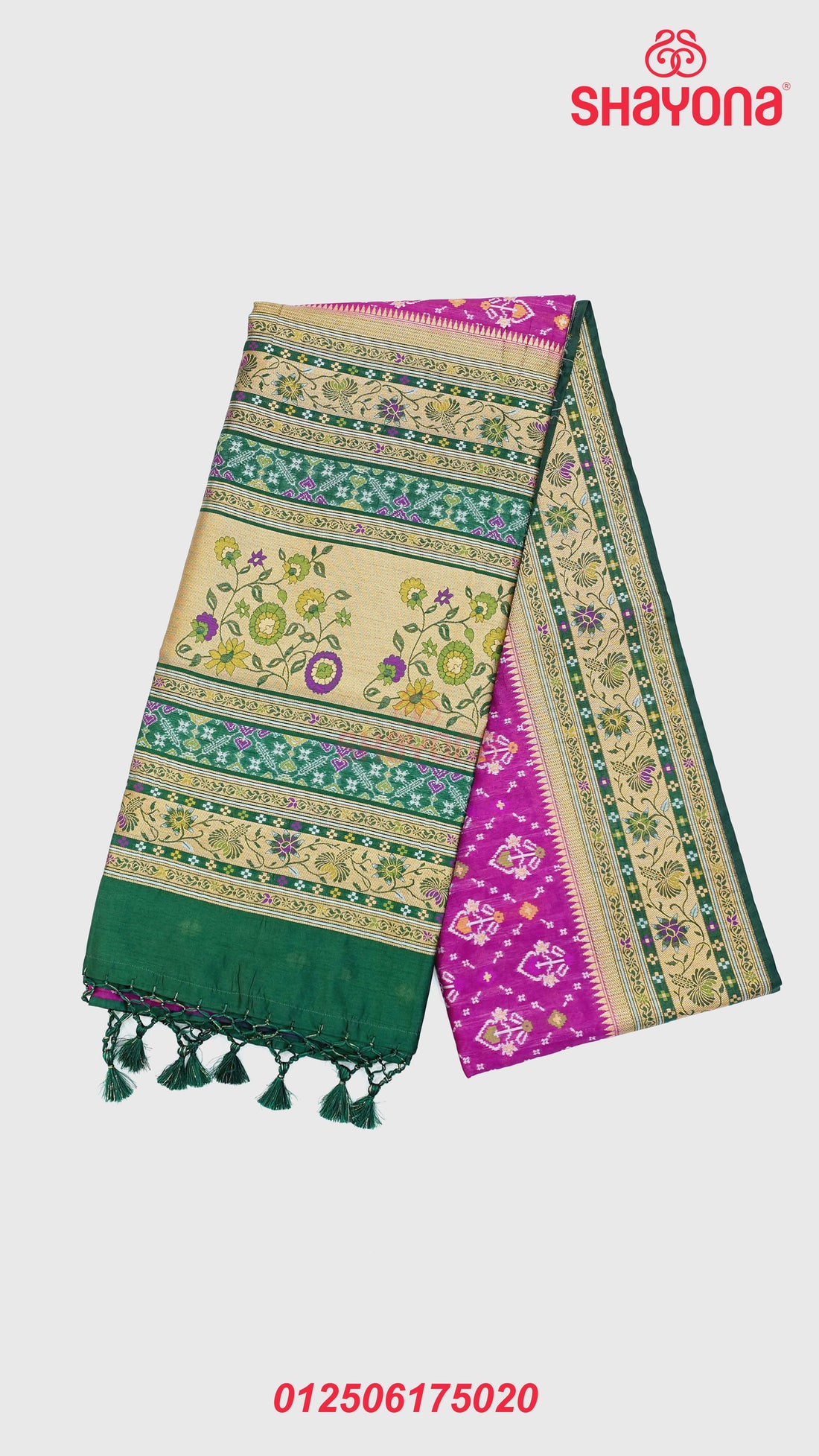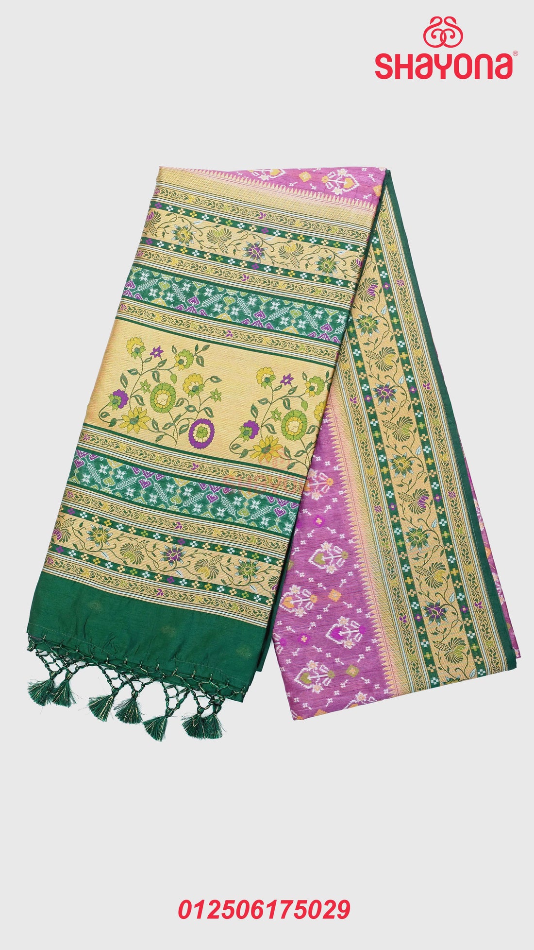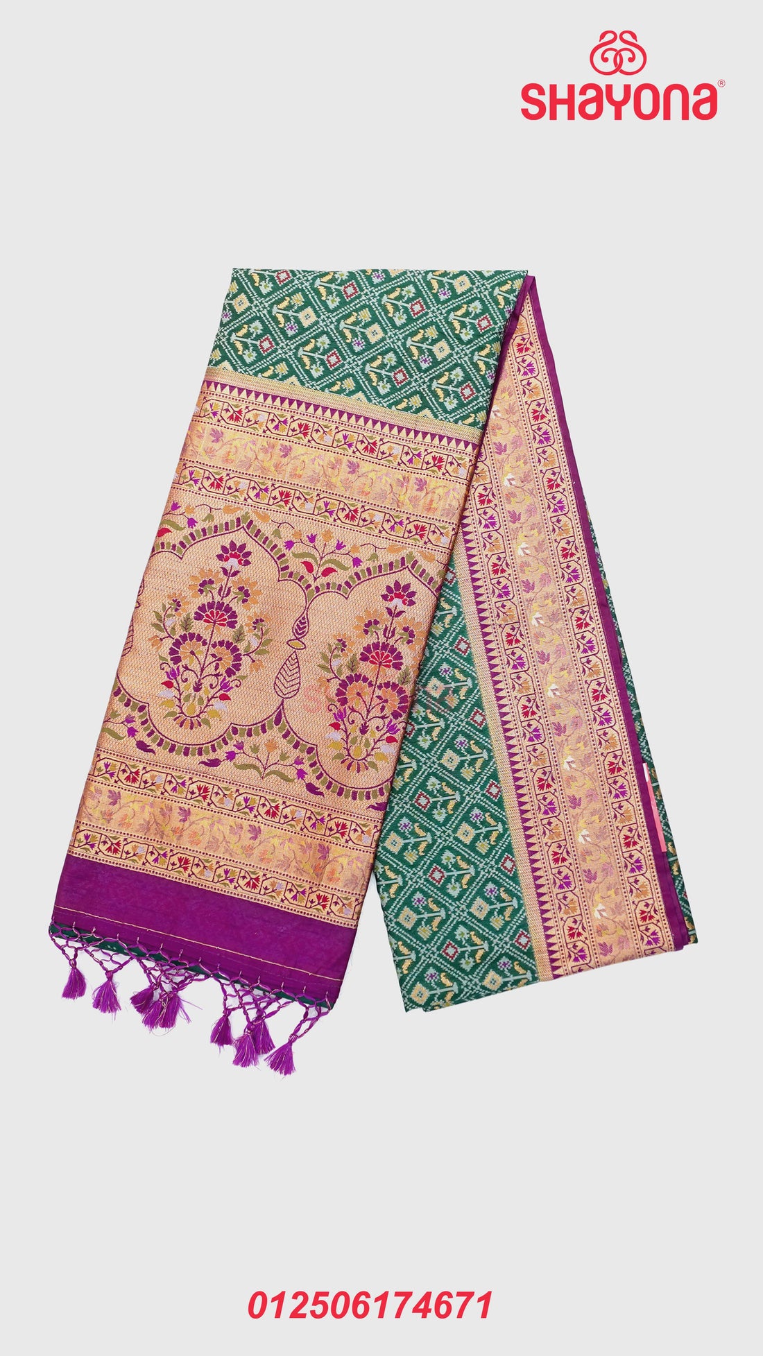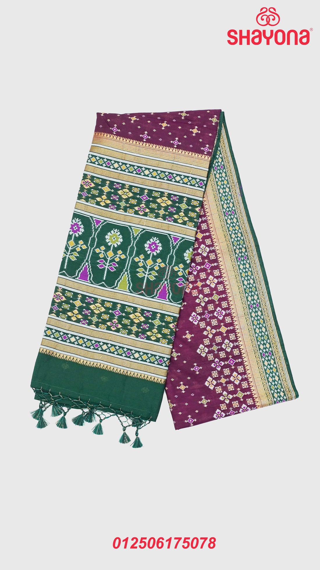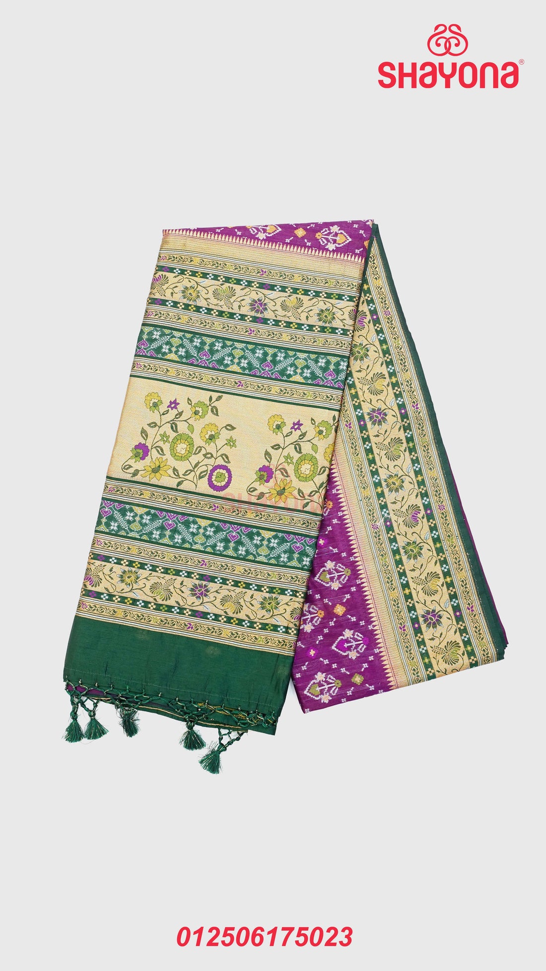 Product Description: Make a sophisticated statement with this elegant Onion Purple & Dark Green Ghicha...