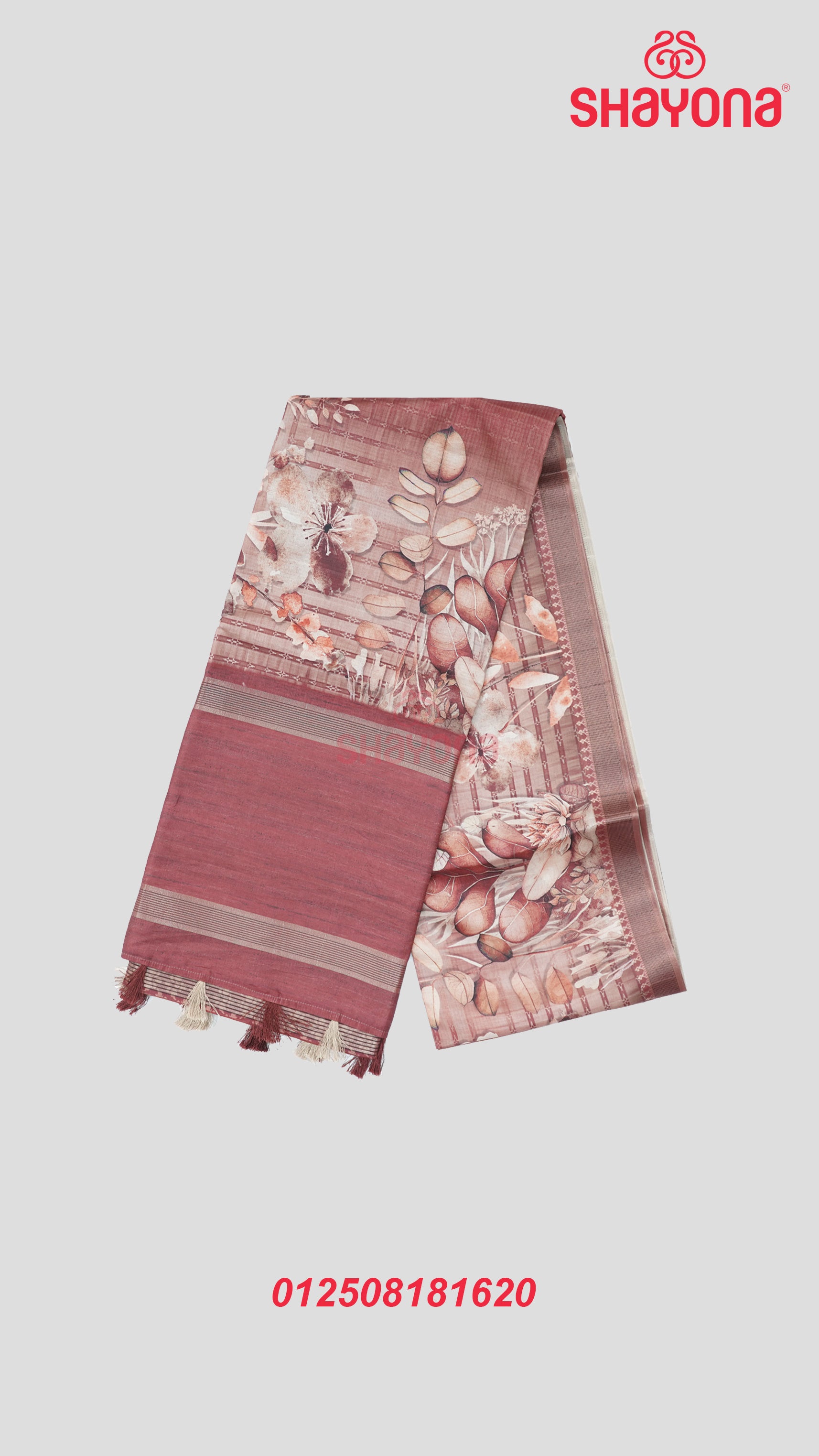 - #TussaCottonSaree #DarkRoseGoldSaree #FloralButtaSaree #DigitalPrintSaree #FestiveSaree2025 #HandwovenSaree #EthnicWear #IndianTraditionalSaree #PallavDesign #SareeStyle