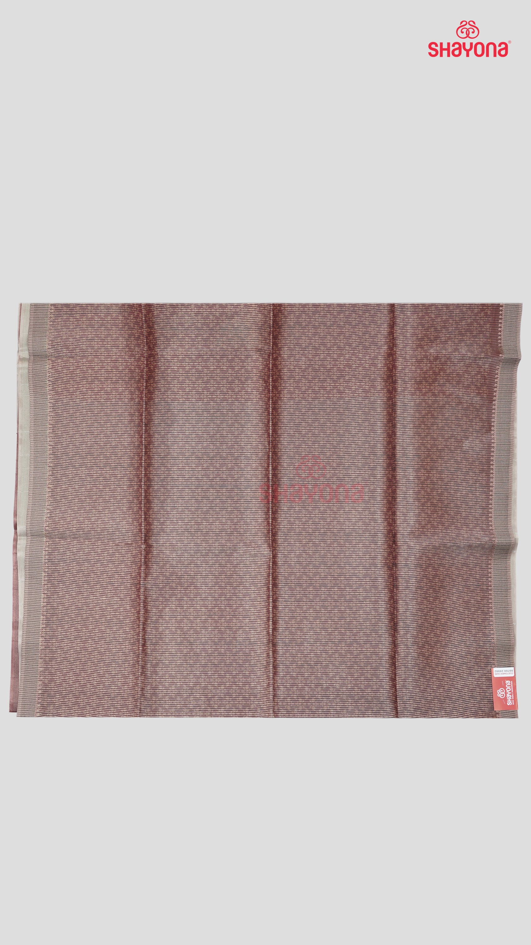 Add a touch of sophistication to your ethnic wardrobe with this dark rose gold weaved Tussa-based cotton saree, crafted for women who appreciate the blend of traditional weaving and modern design. With a length of 5.50 meters, this saree drapes gracefully, perfect for festive occasions, weddings, or casual ethnic gatherings.