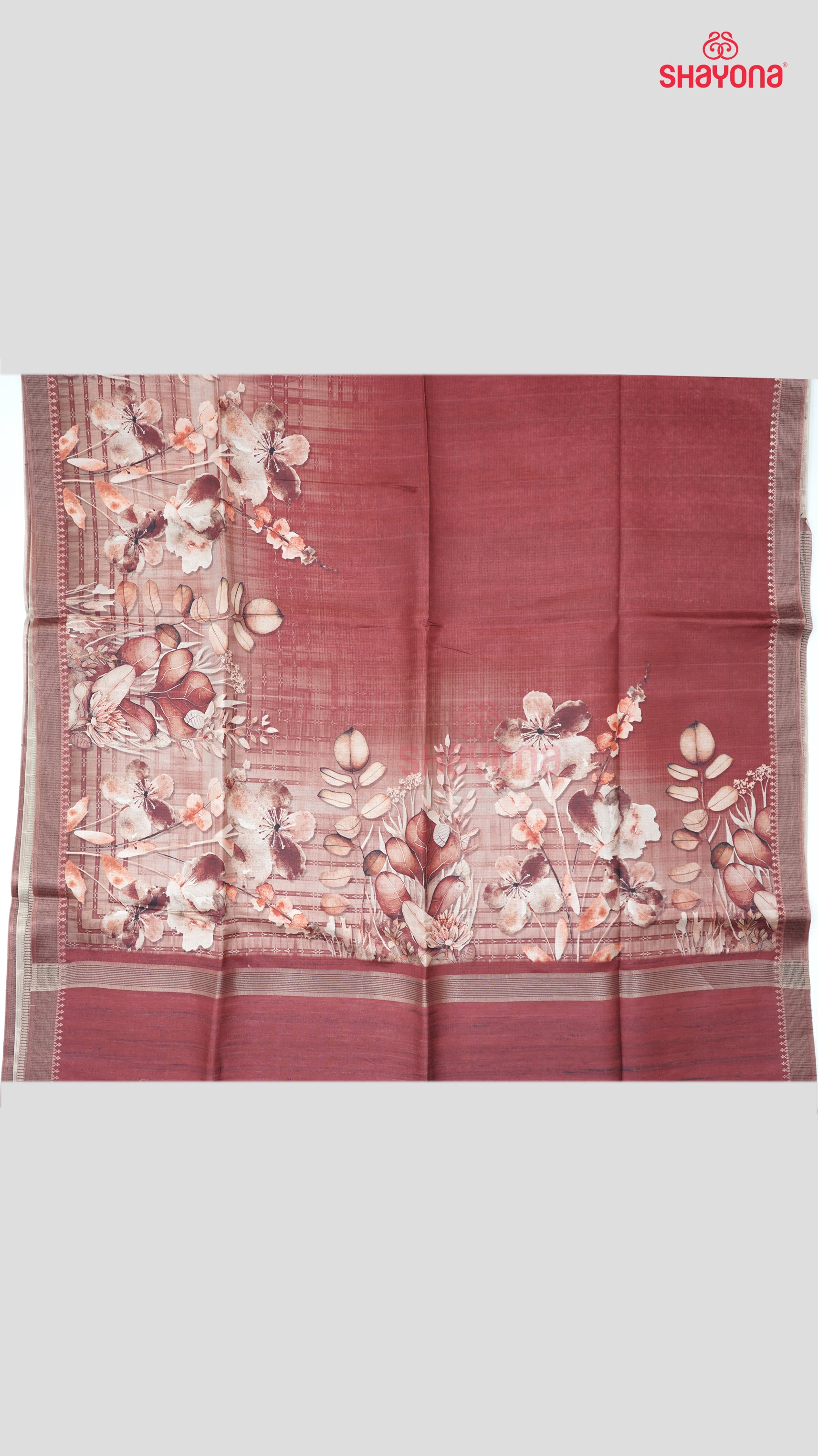 Dark Rose Gold Tussa Cotton Saree – Elegant Ethnic Charm
