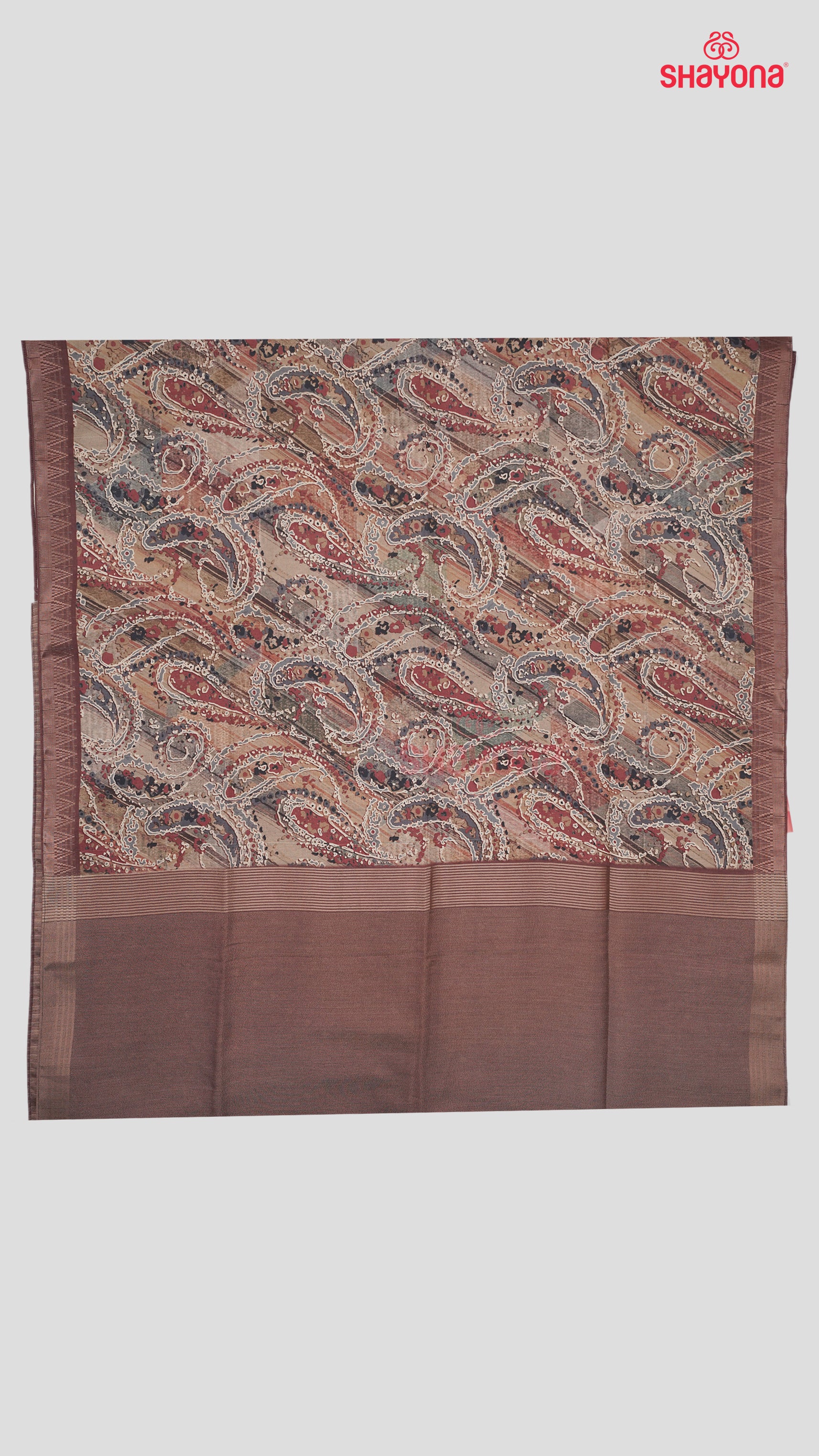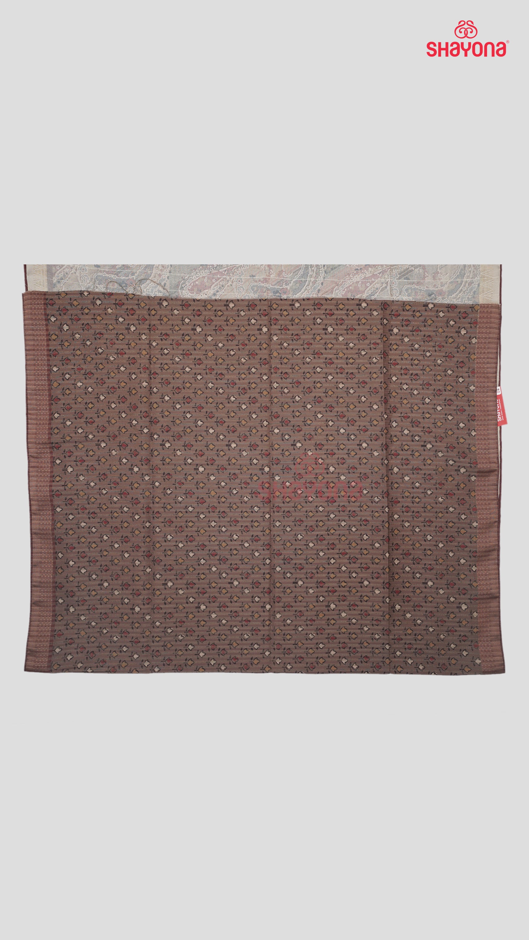 Dark Rose Gold Tussa Cotton Saree with Digital Buttis & Jaal