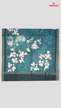 Elevate your ethnic wardrobe with this exquisite Deep Steel Blue & Light Black Tussa Cotton Saree. Crafted from premium weaved Tussa-based cotton, this saree features a 5.50-meter drape with unmatched elegance. The blouse piece, measuring 0.80 meters, is adorned with delicate digital printed ivory floral butti for a graceful look.