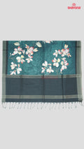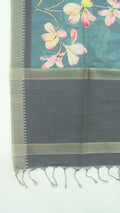 Deep Steel Blue & Light Black Weaved Tussa Cotton Saree with Multicoloured Floral Butta Jaal