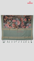 Step into timeless elegance with this green & multicolour shaded weaved Tussa based cotton saree (5.50 mts), blending tradition with modern digital artistry. The saree features a digital printed multicoloured floral jaal all over the shaded gala, complemented beautifully by a rich green pallav & border for a regal touch.