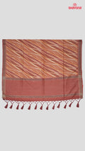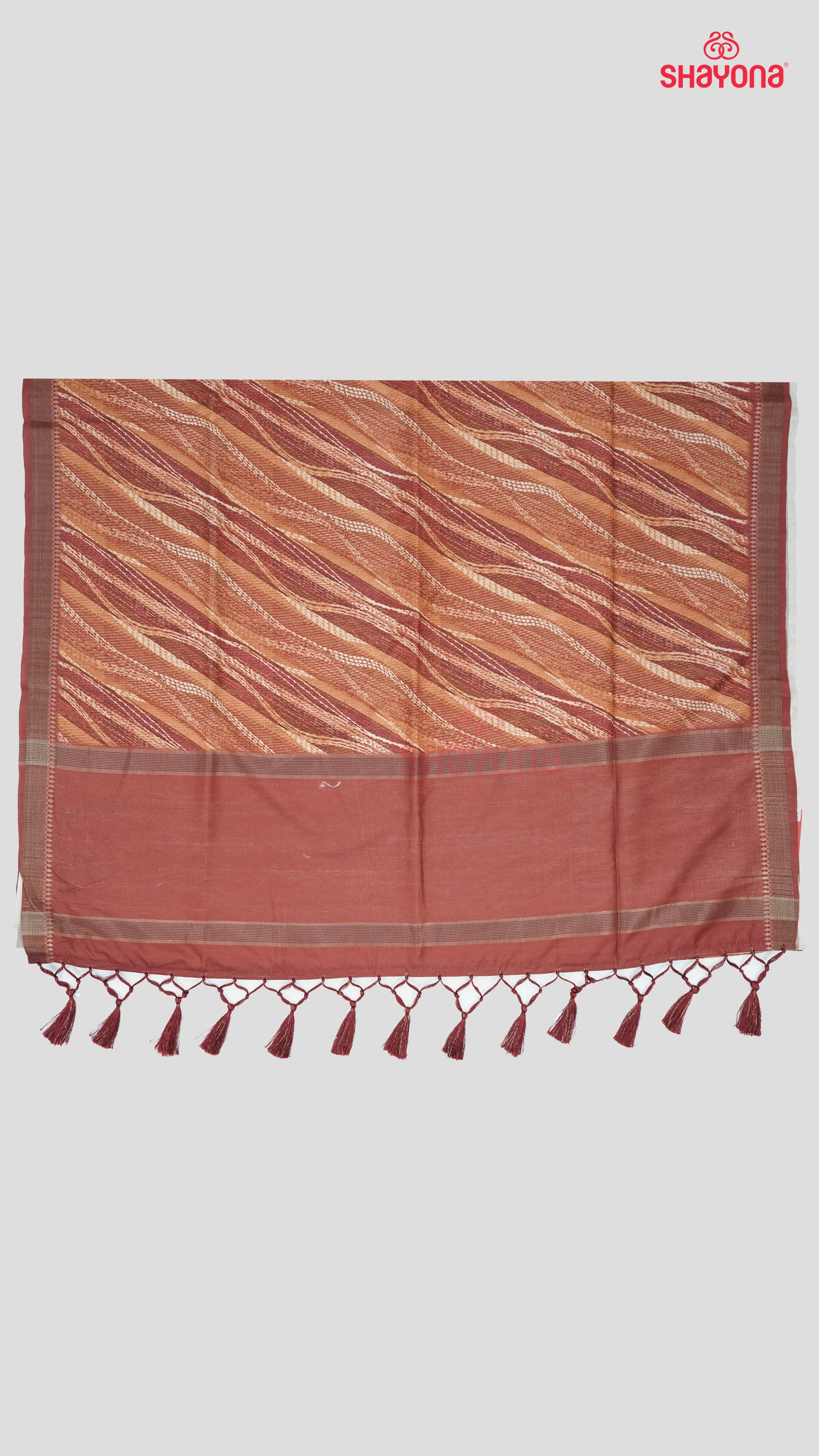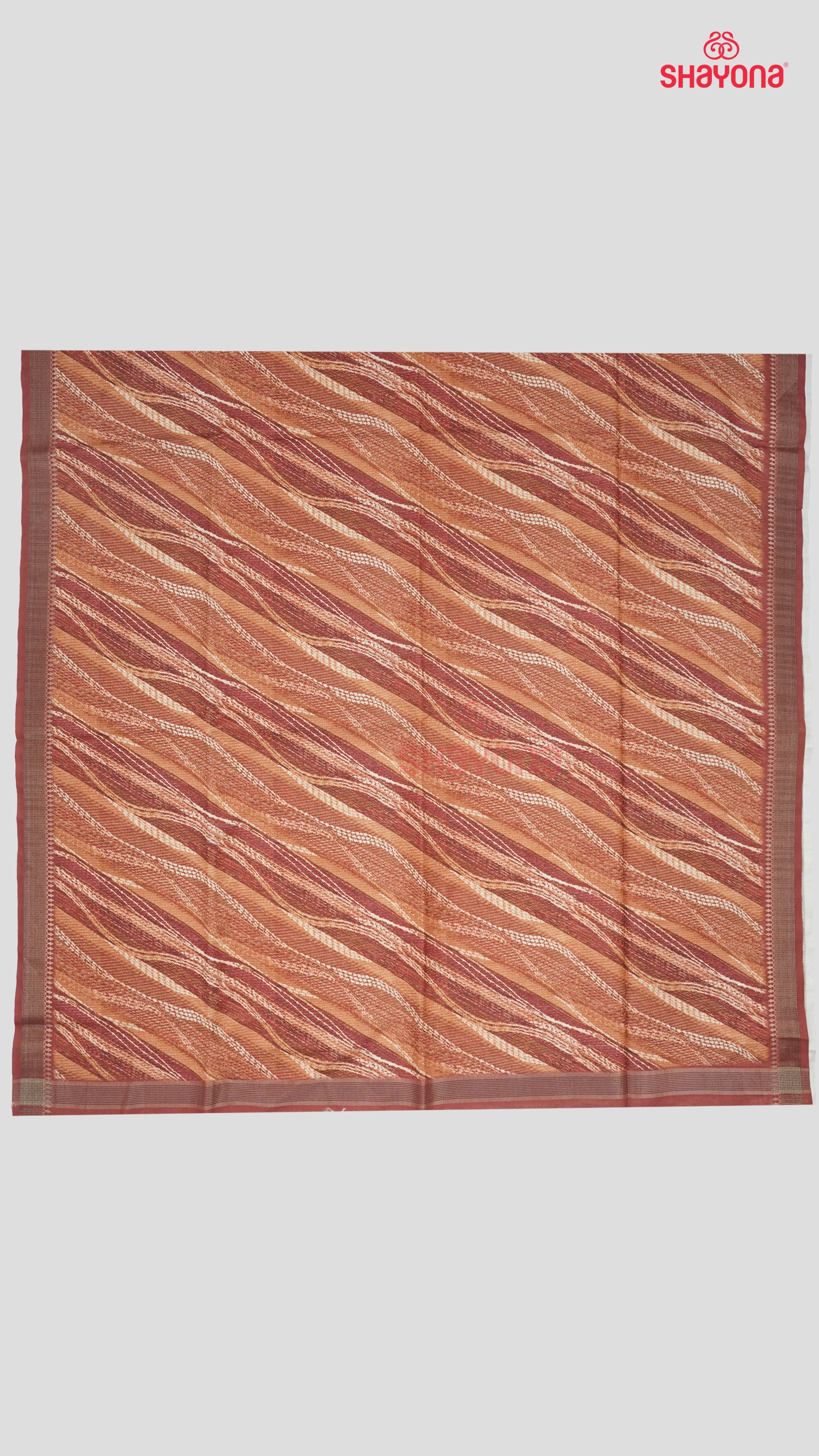 Rosy Brown Tussa Cotton Saree with Diagonal Waves Jaal