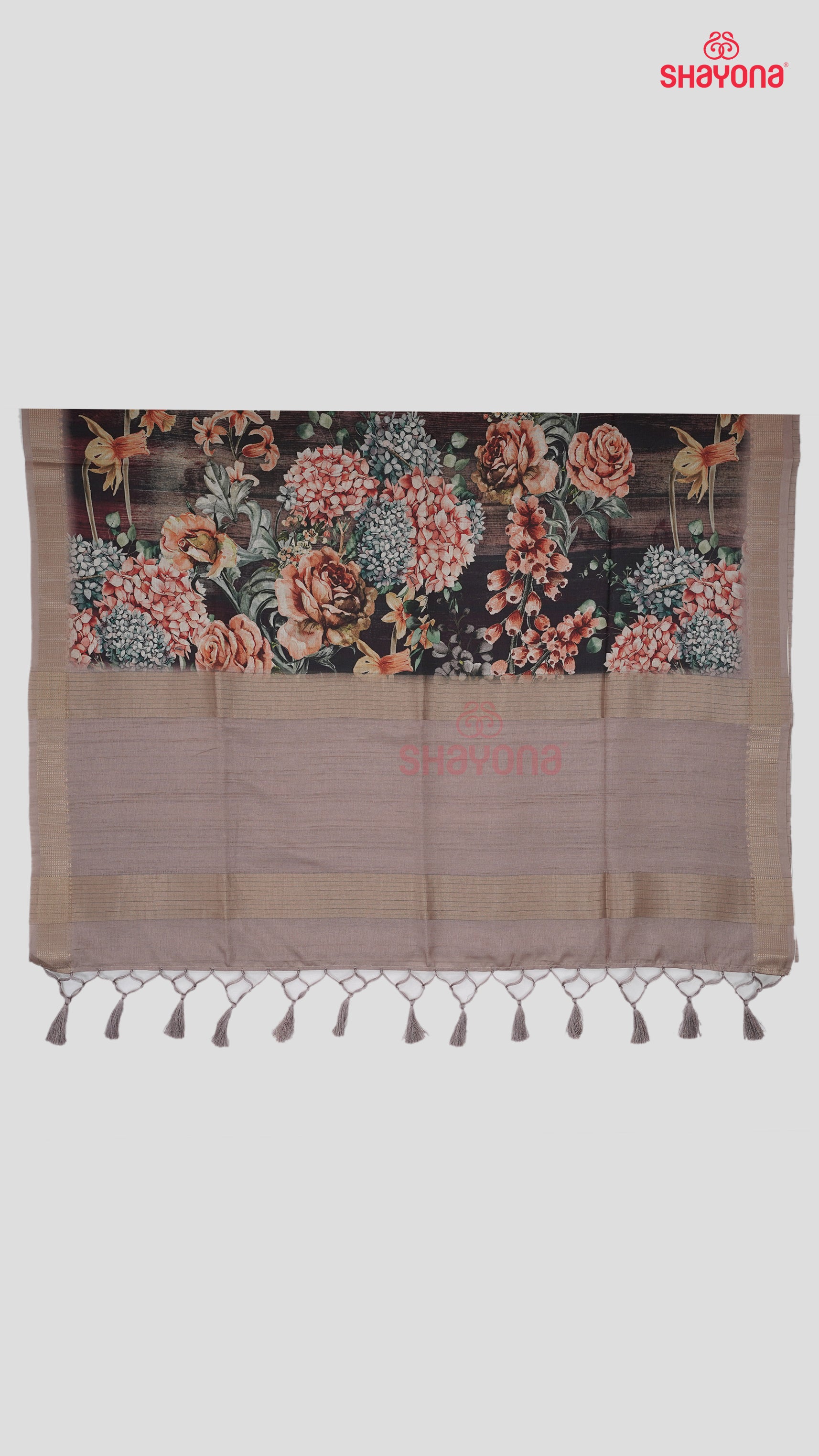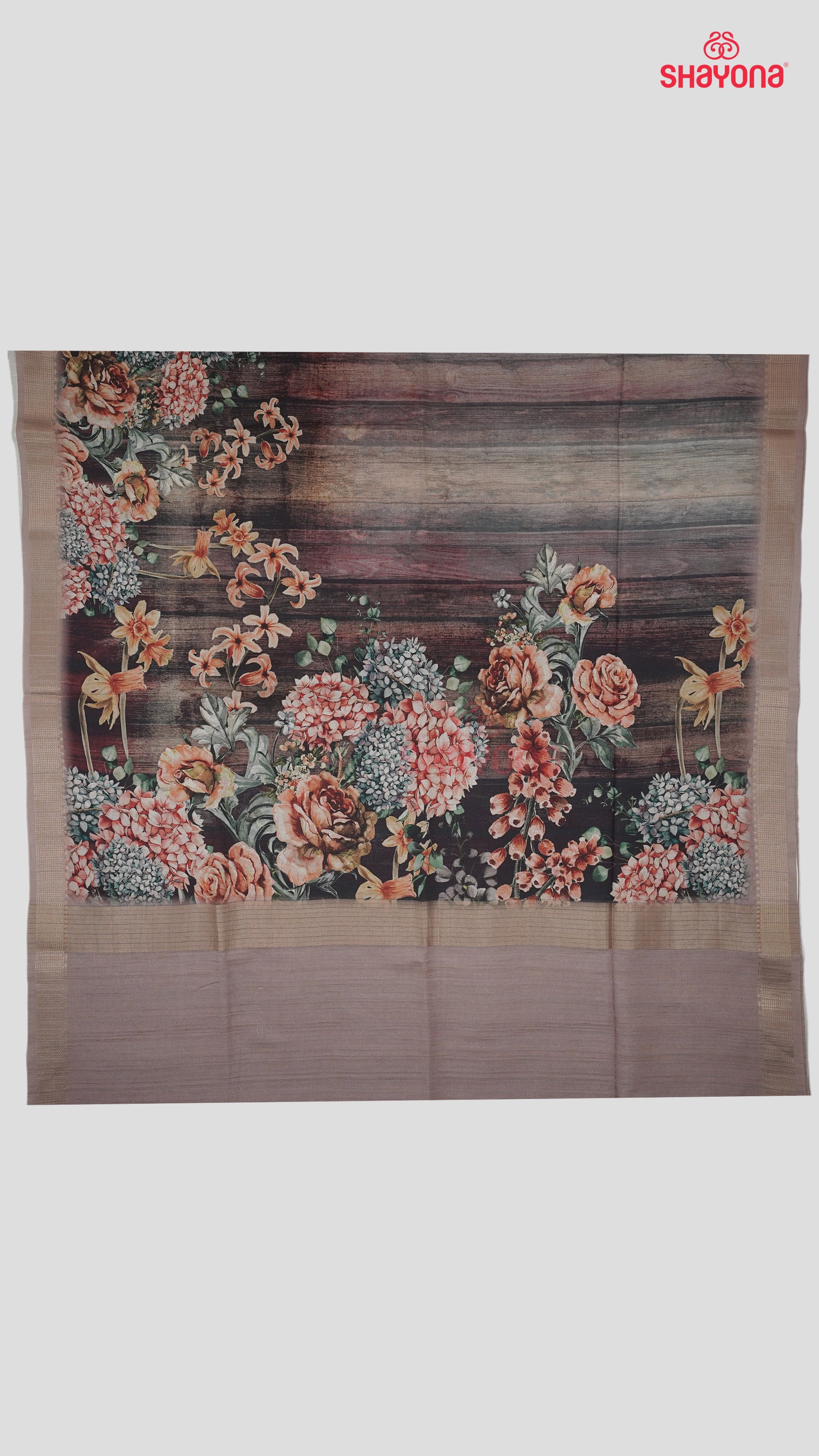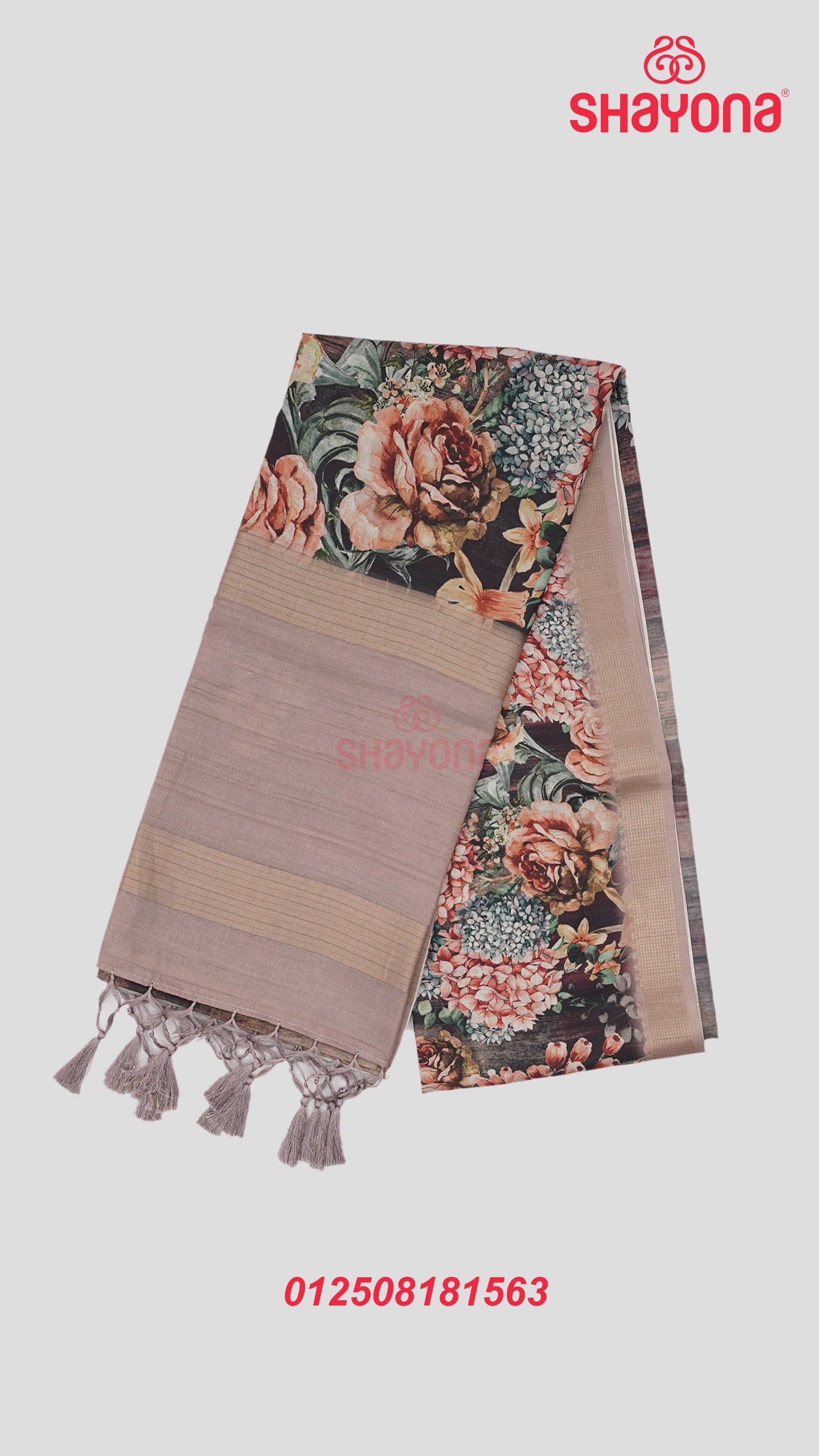 - #TussaCottonSaree #RosyGraySaree #FloralSaree #DigitalPrintSaree #FestiveSaree2025 #HandwovenSaree #EthnicWear #IndianTraditionalSaree #PallavDesign #SareeStyle