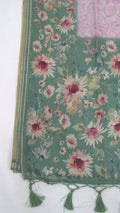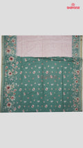 Sea Green & Pink Weaved Tussa Cotton Saree with Multicoloured Floral Butta Jaal