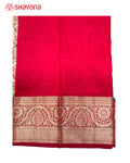This Kanjivaram Silk Saree is handwoven by skilled artisans from Kanchipuram, Tamil Nadu—renowned worldwide for their silk weaving heritage. Crafted using pure mulberry silk threads, the saree features dense zari work woven separately and interlocked with the silk body, ensuring exceptional durability and richness.