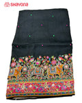 This Tissue Pashmina Silk Saree is crafted using a meticulous weaving process where fine silk threads are blended with tissue yarns to achieve a graceful shine and fluid drape. Skilled artisans then embellish the saree with intricate handwork, inspired by traditional Indian motifs such as florals, paisleys, elephants, and royal patterns. Each piece takes days of detailed craftsmanship, making every saree a unique heirloom creation that celebrates India’s rich textile heritage.