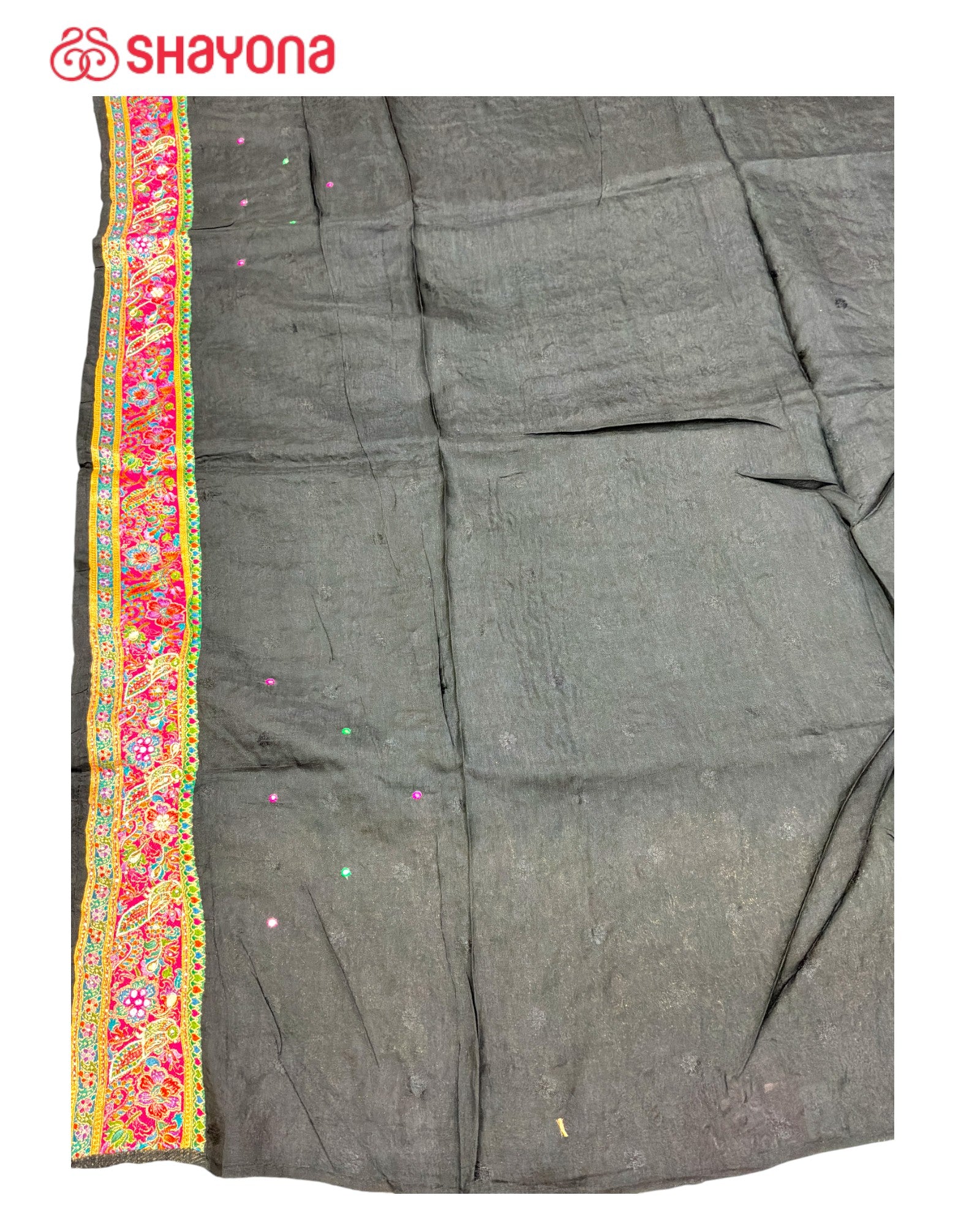 A masterpiece of elegance and heritage, this Tissue Pashmina Silk Saree with Handwork blends luxurious silk with delicate pashmina texture, adorned with intricate hand embroidery that reflects timeless Indian craftsmanship.