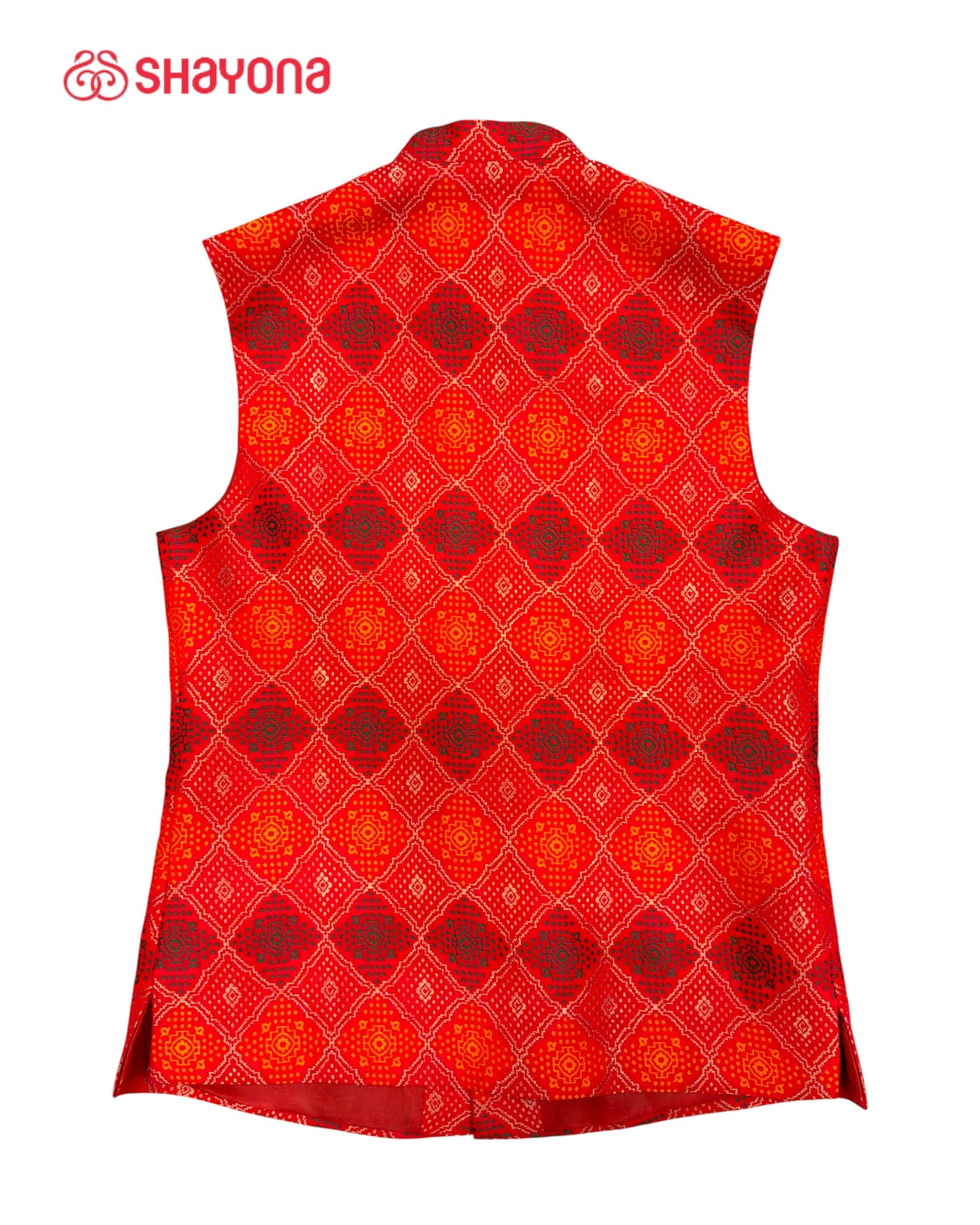 Men’s Nehru Jacket / Koti – Silk Printed Ethnic Jacket with Embroidery & Handwork