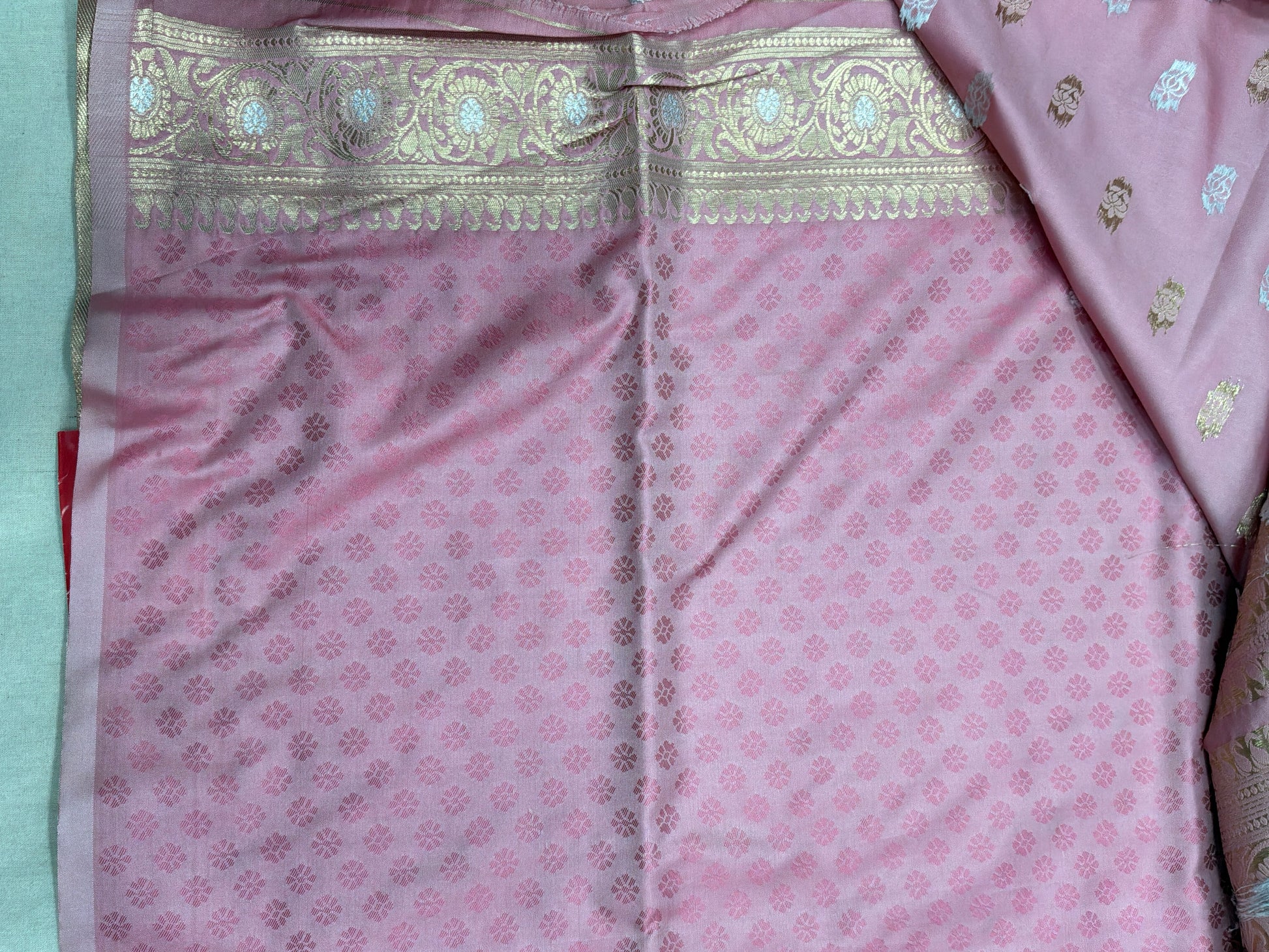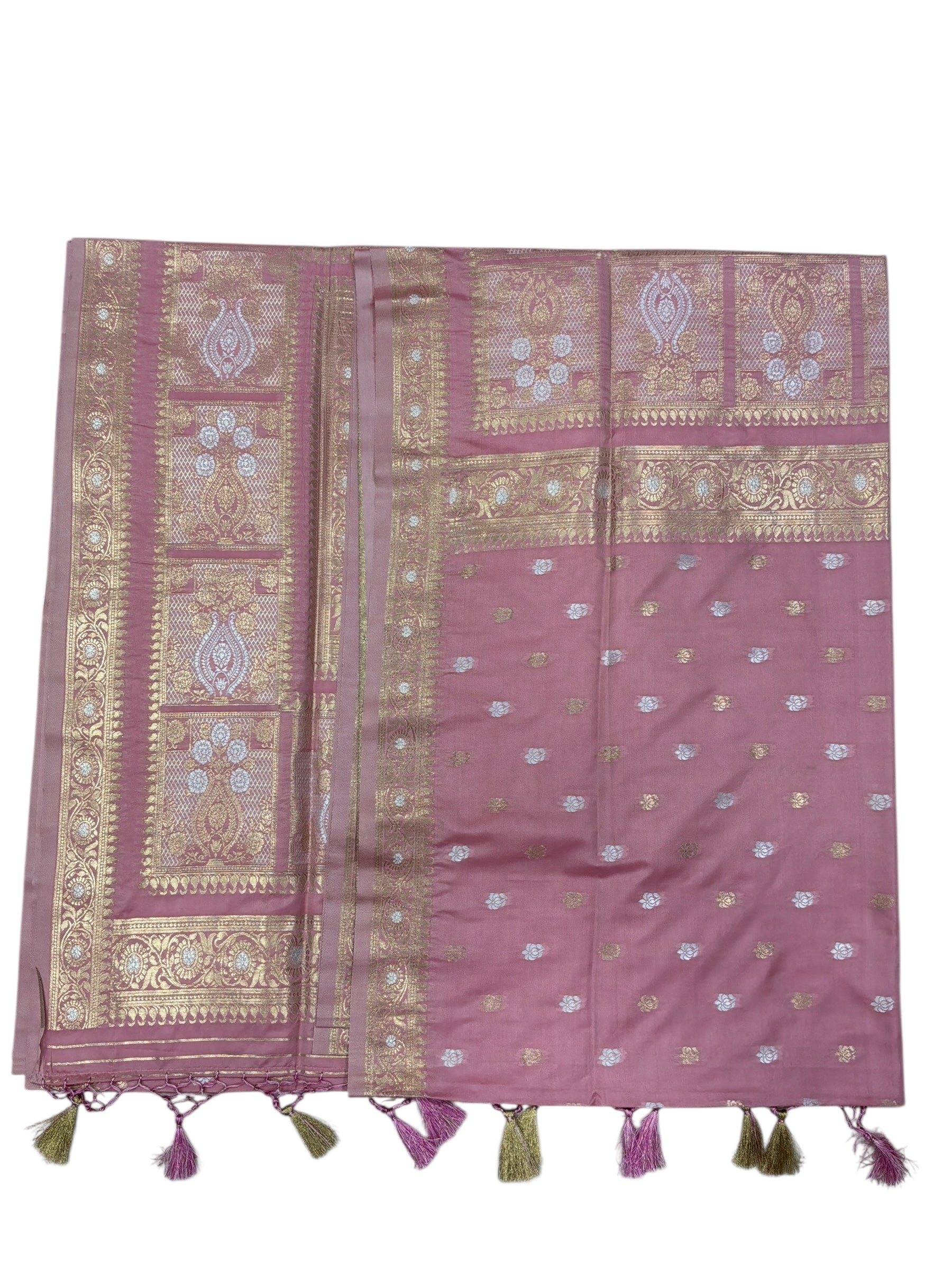 • Blouse: Unstitched Banarasi silk blouse piece (included)