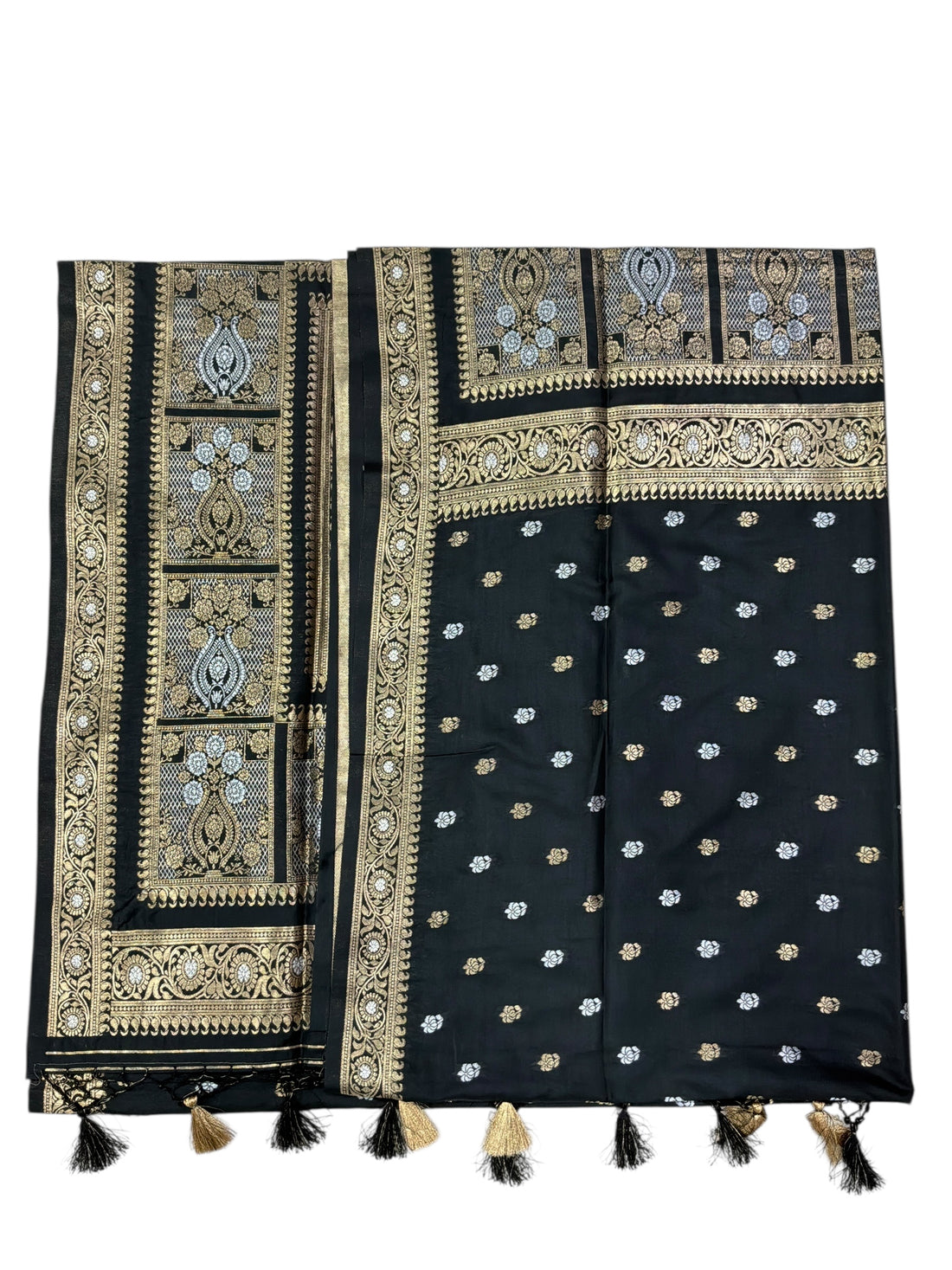 Product Description: Embrace the richness of heritage with this stunning Black Weaved Tissue Art Silk...