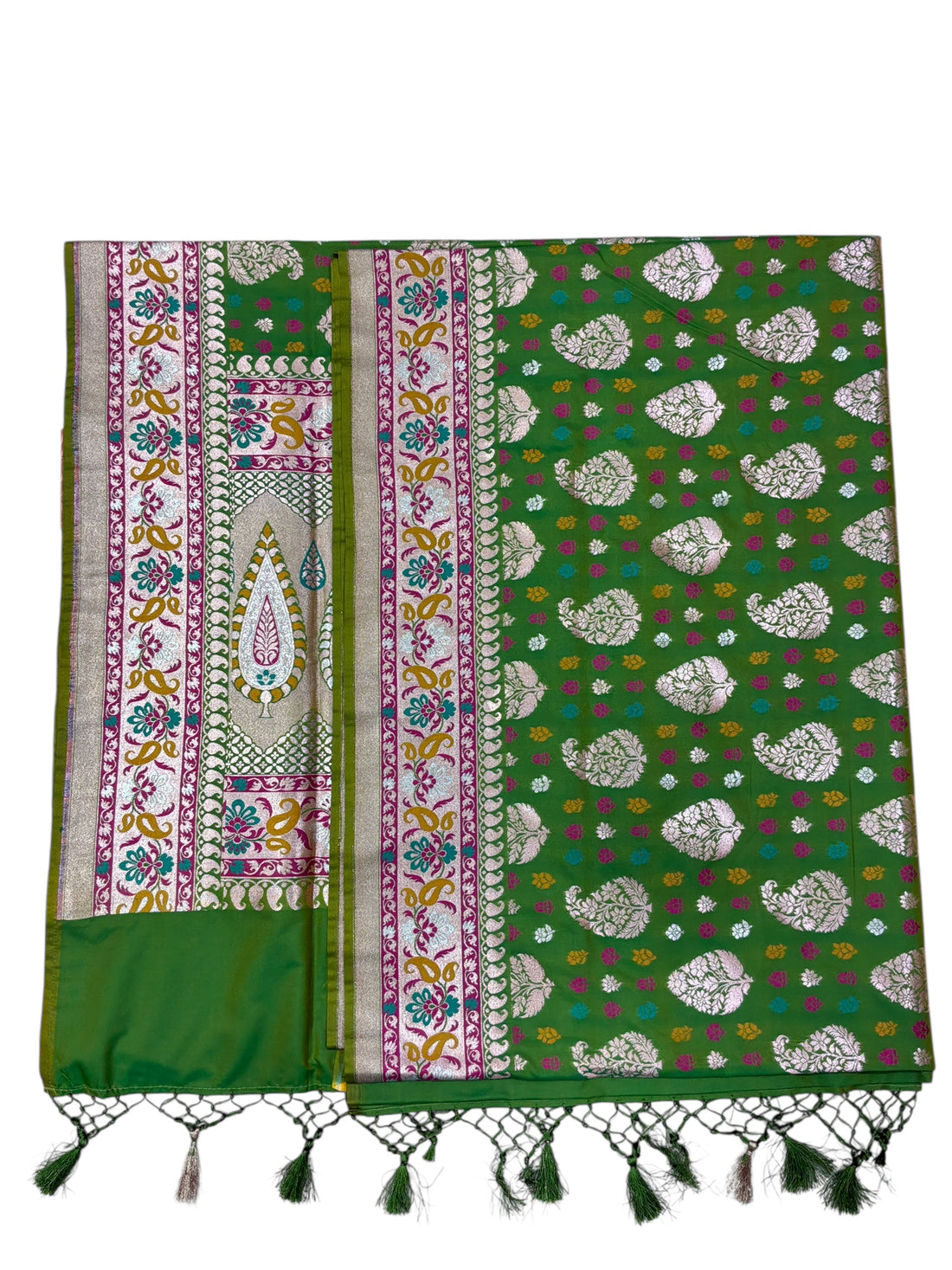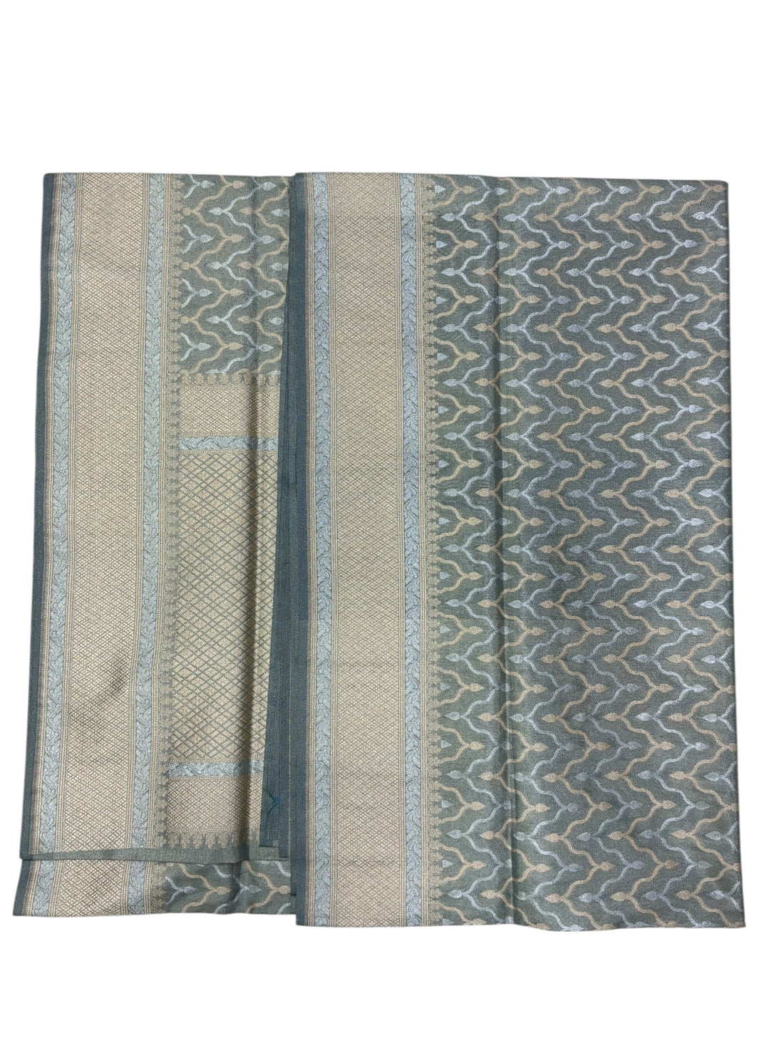 Dark Sage Green Weaved Tissue Art Silk Saree