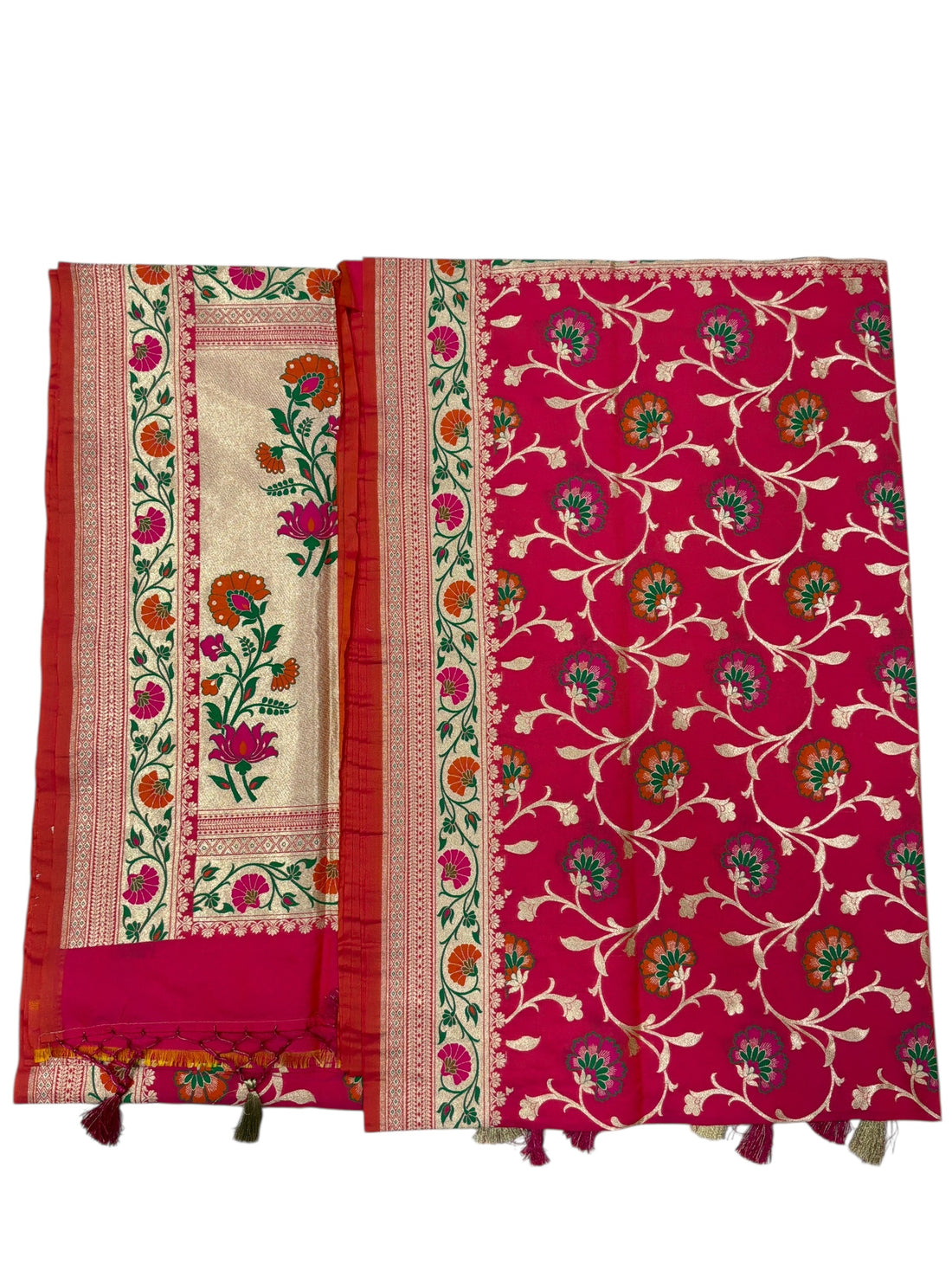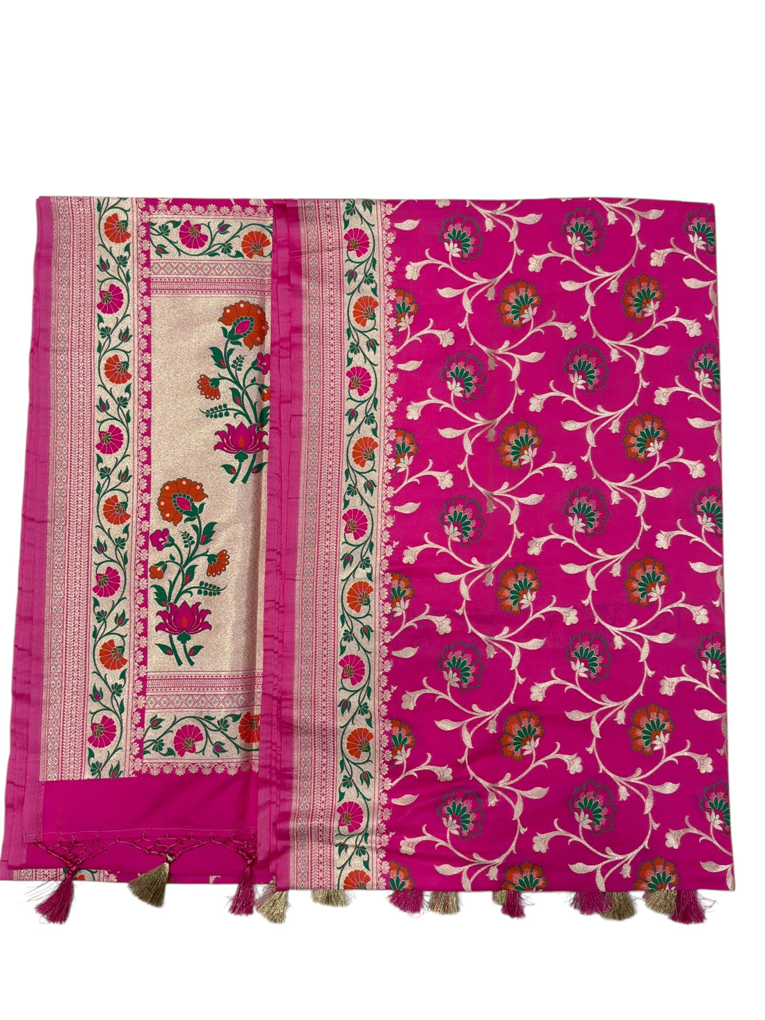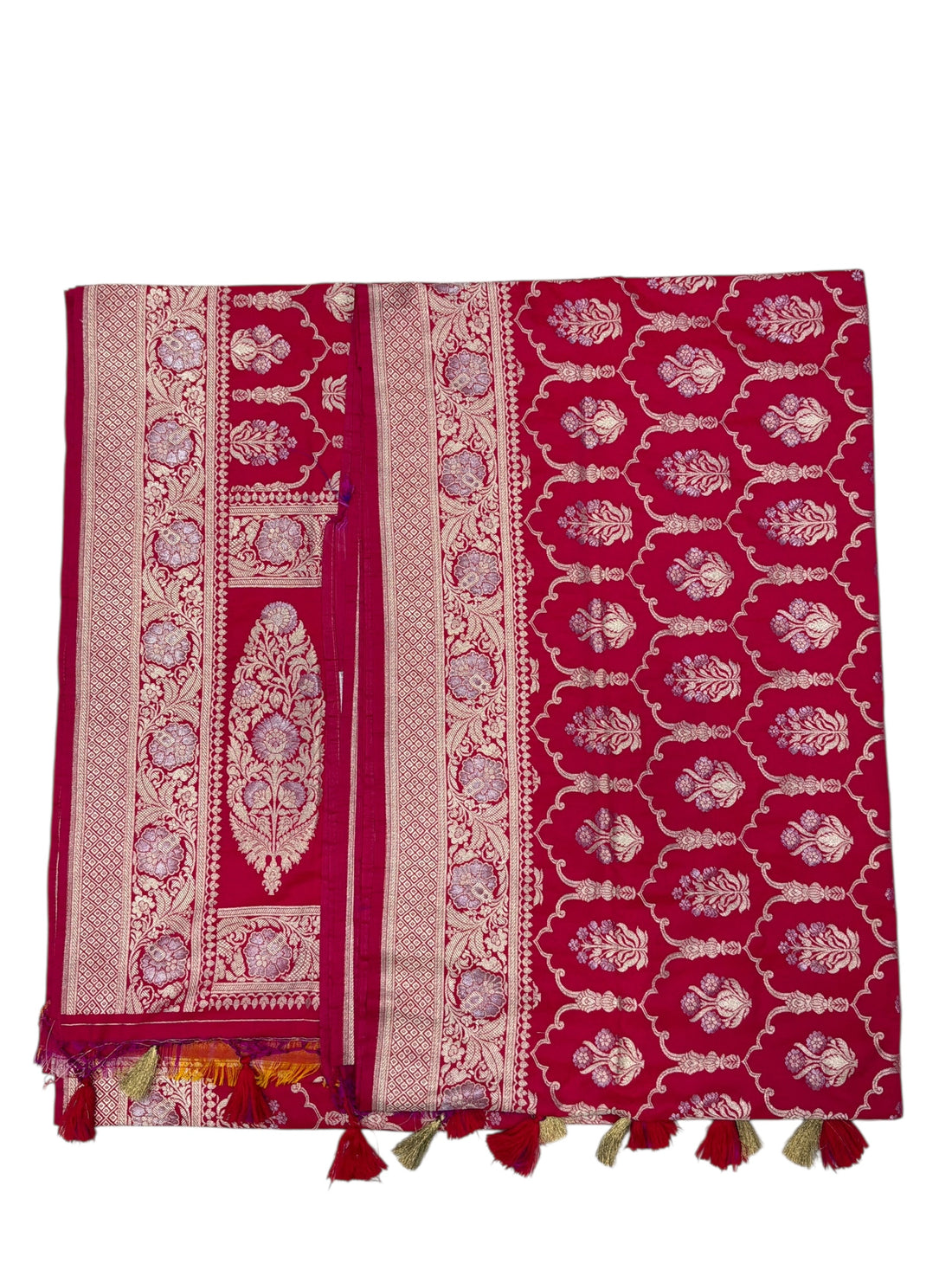 Banarasi Silk Saree with All-Over Jaal Design Experience the timeless grandeur of Indian craftsmanship with...