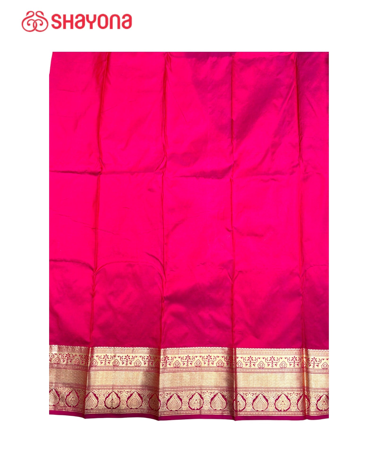 Traditional motifs inspired by temples, coins, florals, and geometric patterns reflect South India’s royal and spiritual legacy. Each saree takes several days to weeks to complete, making it a true masterpiece of Indian handloom artistry.